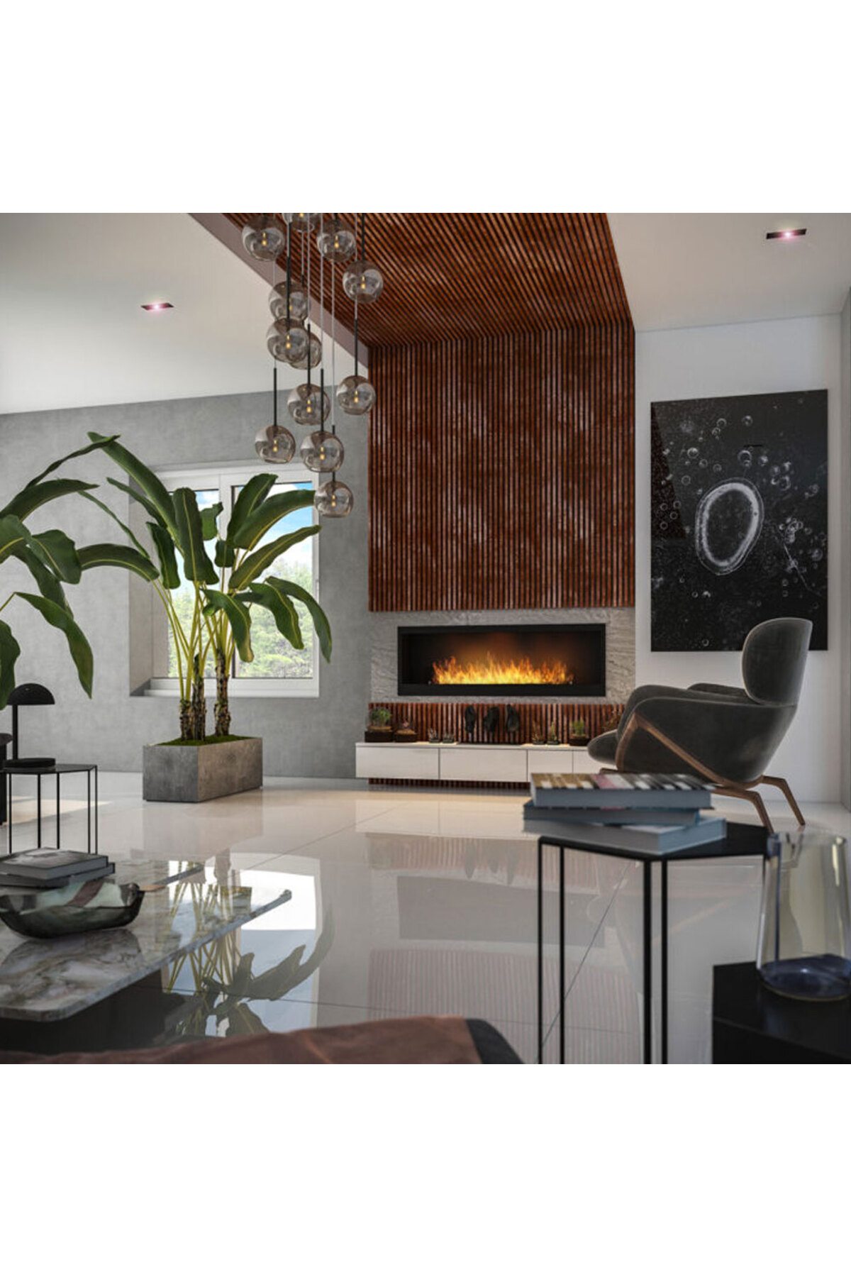 The fireplace is equipped with its own ventilation system, which prevents pressure buildup under the burner in case of fuel overflow. A 100 cm long burner with a single fire line and ceramic fiber ensures safety of use, while providing a beautiful and visually impressive fire. In addition, the fireplace is equipped with tempered glass, which increases safety of use and stabilizes the fire.