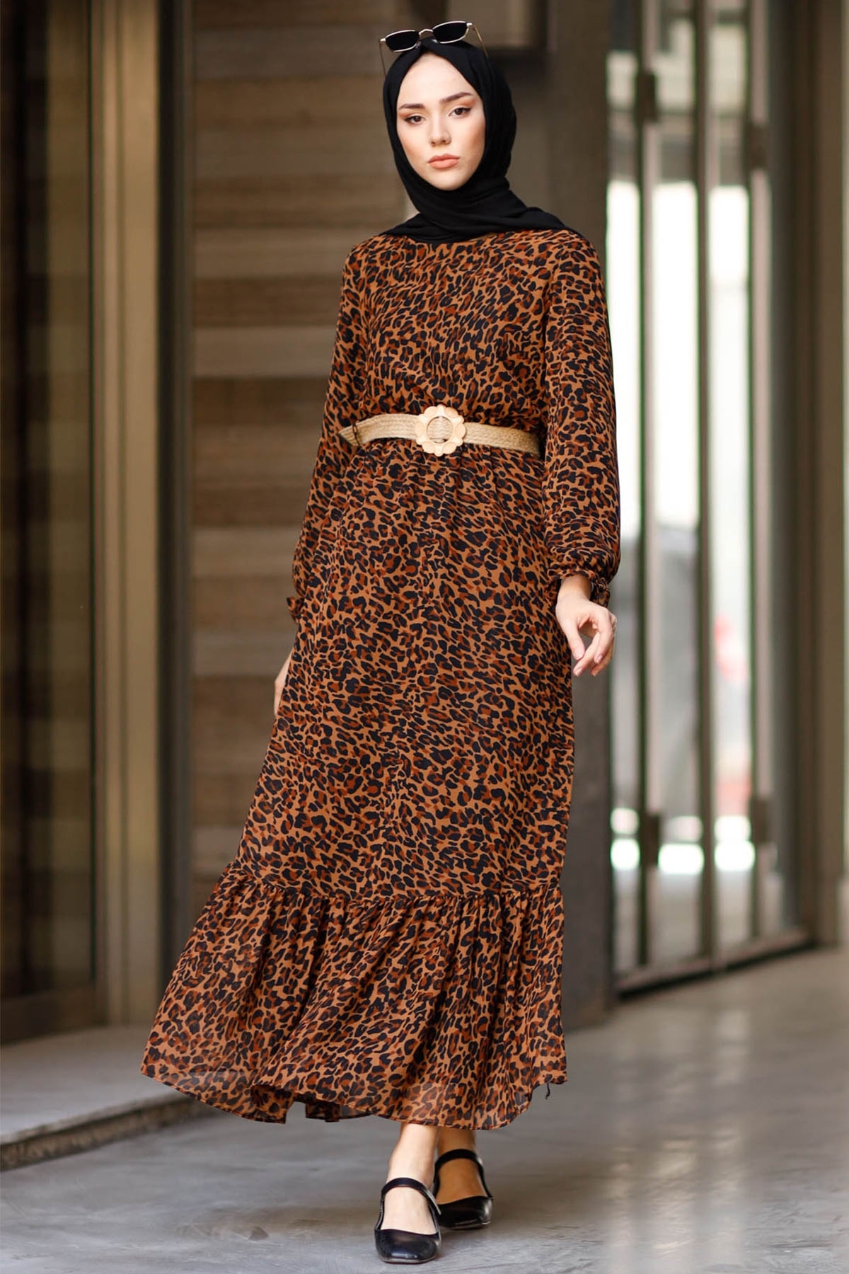 InStyle Leopard Patterned Chiffon Dress - Brown features