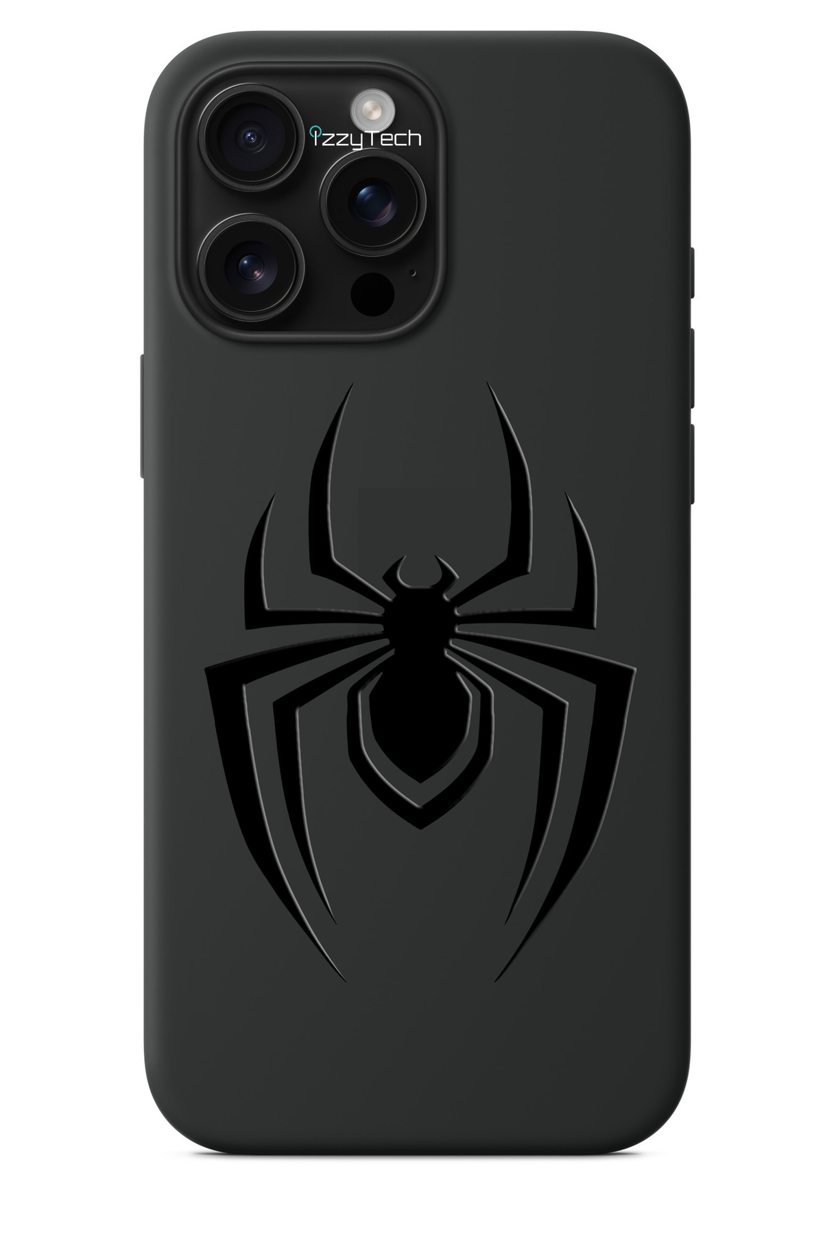 izzytech iPhone 15 Plus Compatible Black Phone Case – Spider Emblem Shiny Varnish Effect Pattern