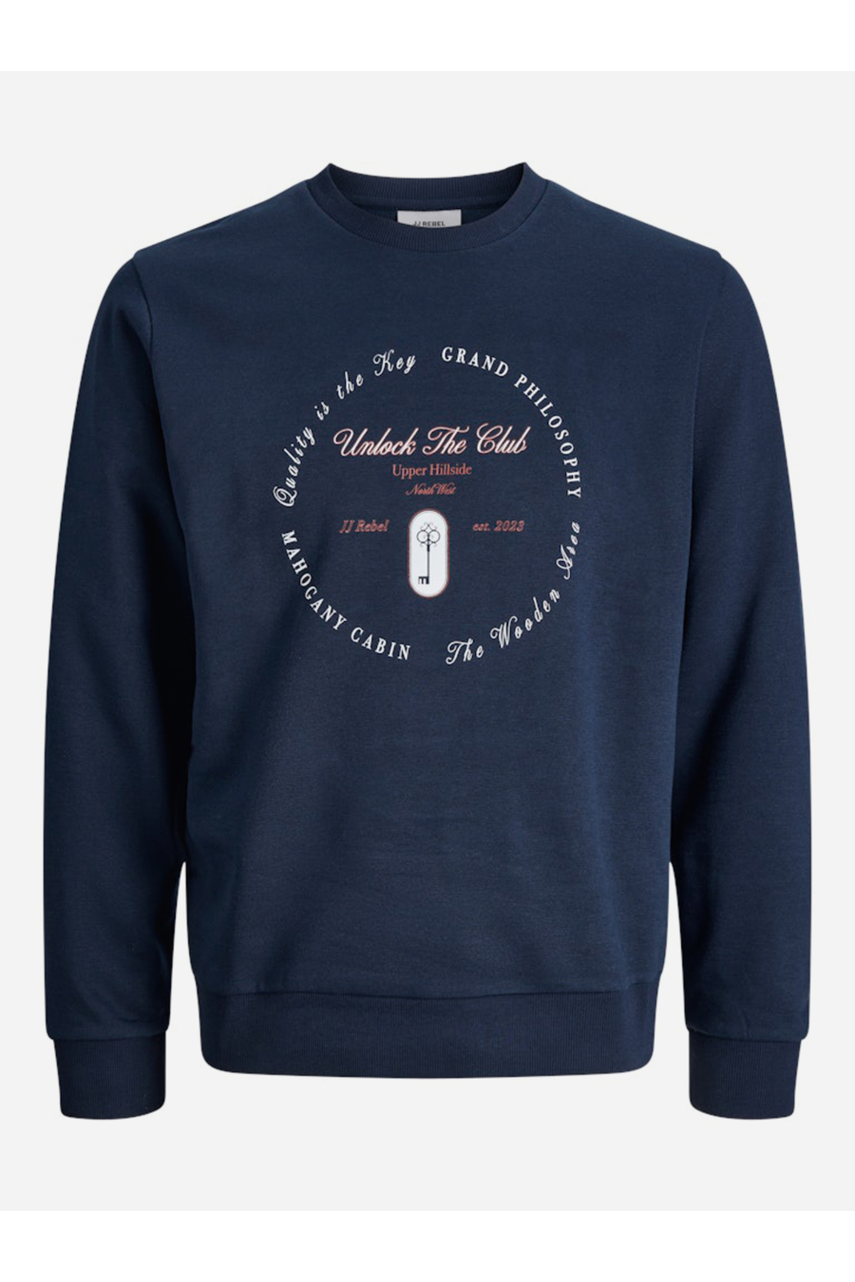 Jack & Jones Navy Blue Printed Pullover Sweatshirt features