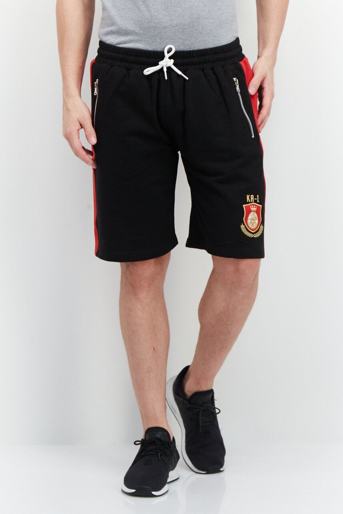 KA-1 Men Embroidered Logo Drawstring Basic Shorts, Black features