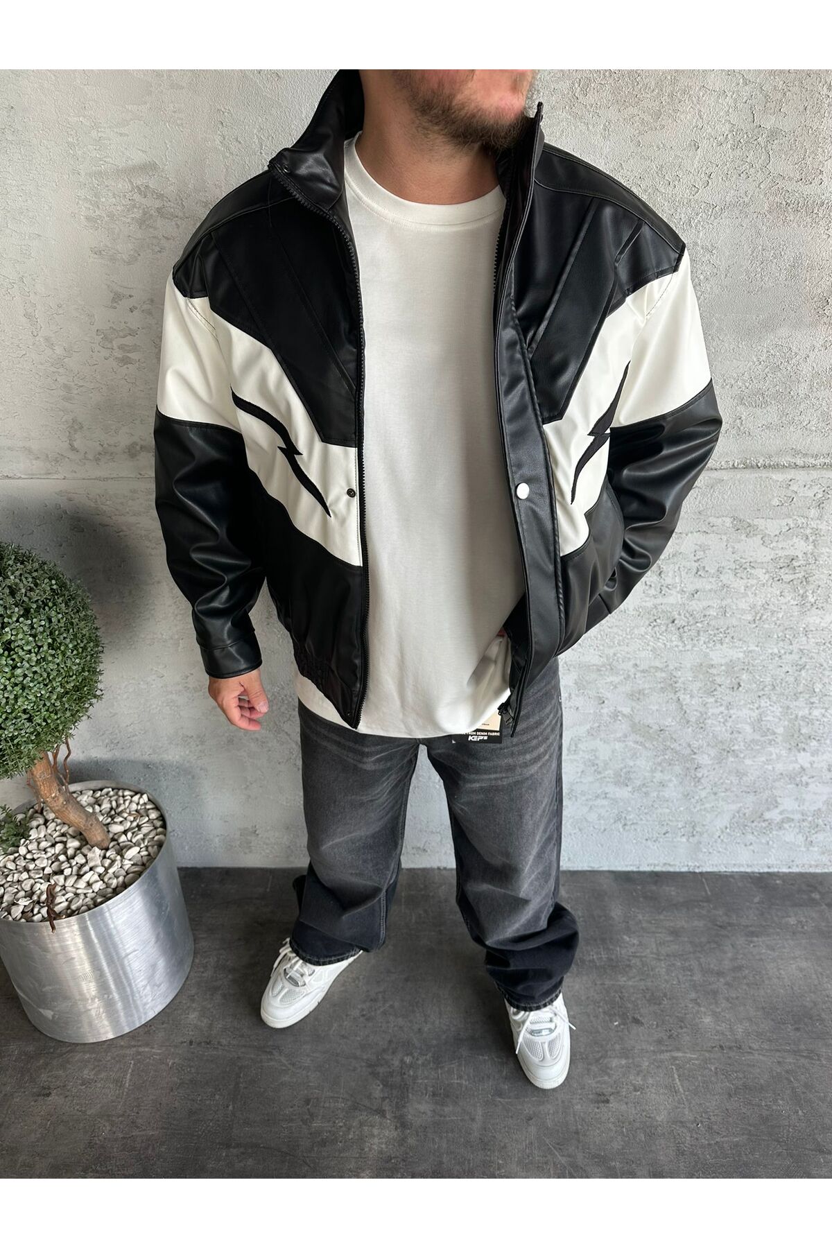 KağanKY Black Patchwork Leather Jacket features