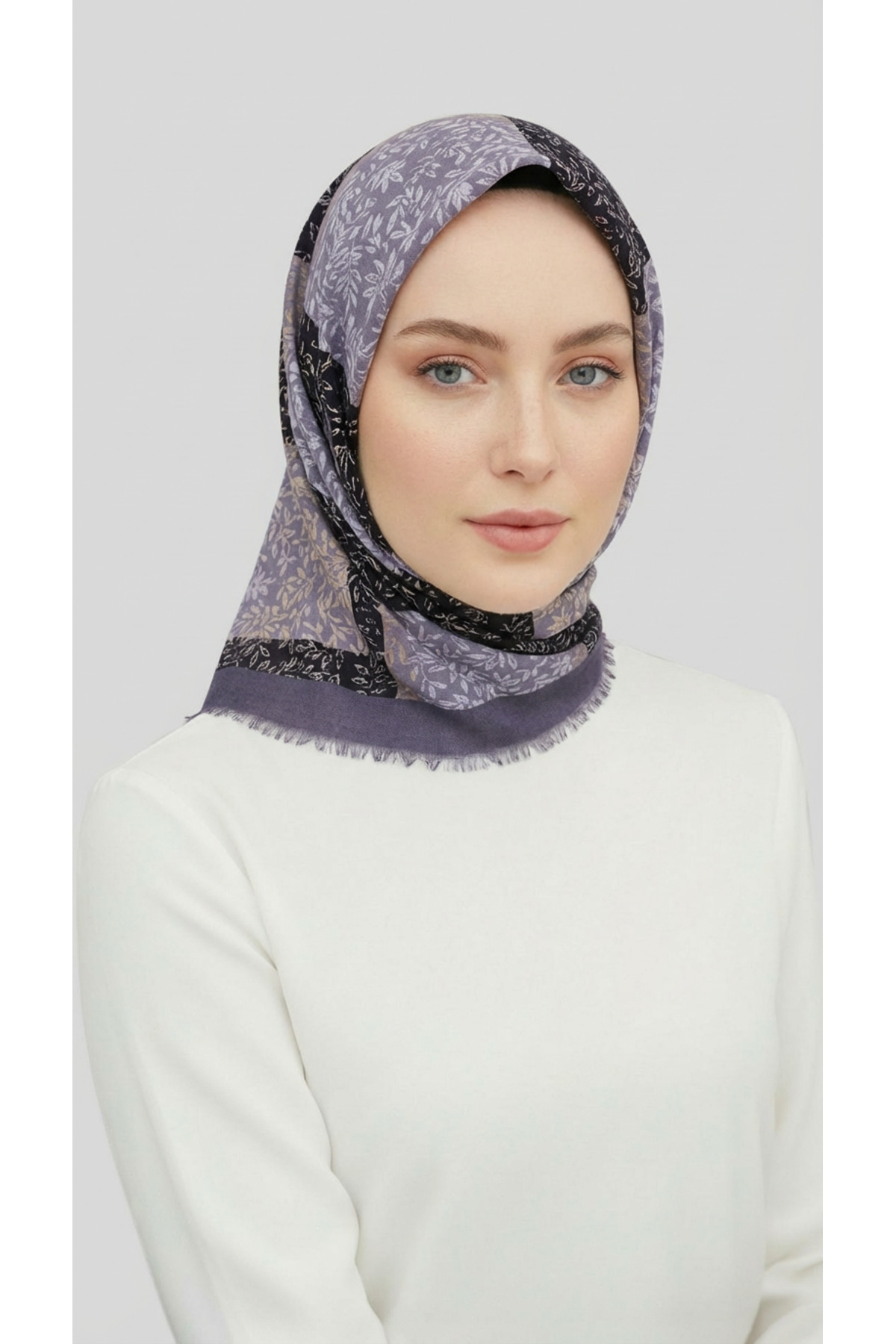 Karaca Eşarp Wool Scarf with Leaf Pattern - Black Grey features