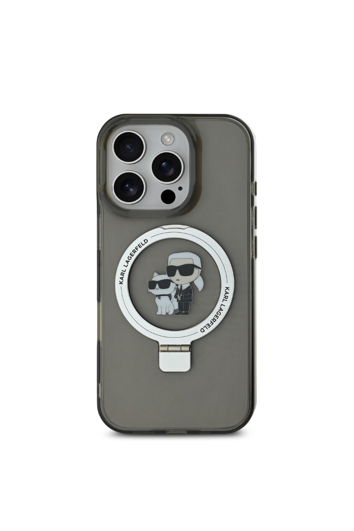 Karl LagerfeId KARL LAGERFELD Practical and Stylish Case for iPhone 16 Pro Max - Dark Clear with Stand and Wireless Charging Support features