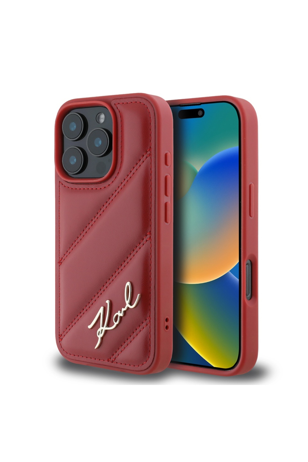 Karl Lagerfeld Case for IPhone 16 Pro, Diagonal Quilted Script, - Red features