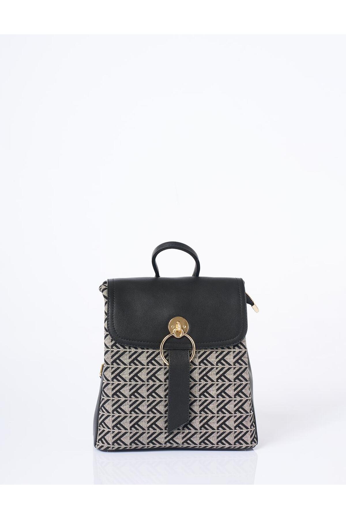 Kayra Monogram Pattern Medium Shopper Bag Black features
