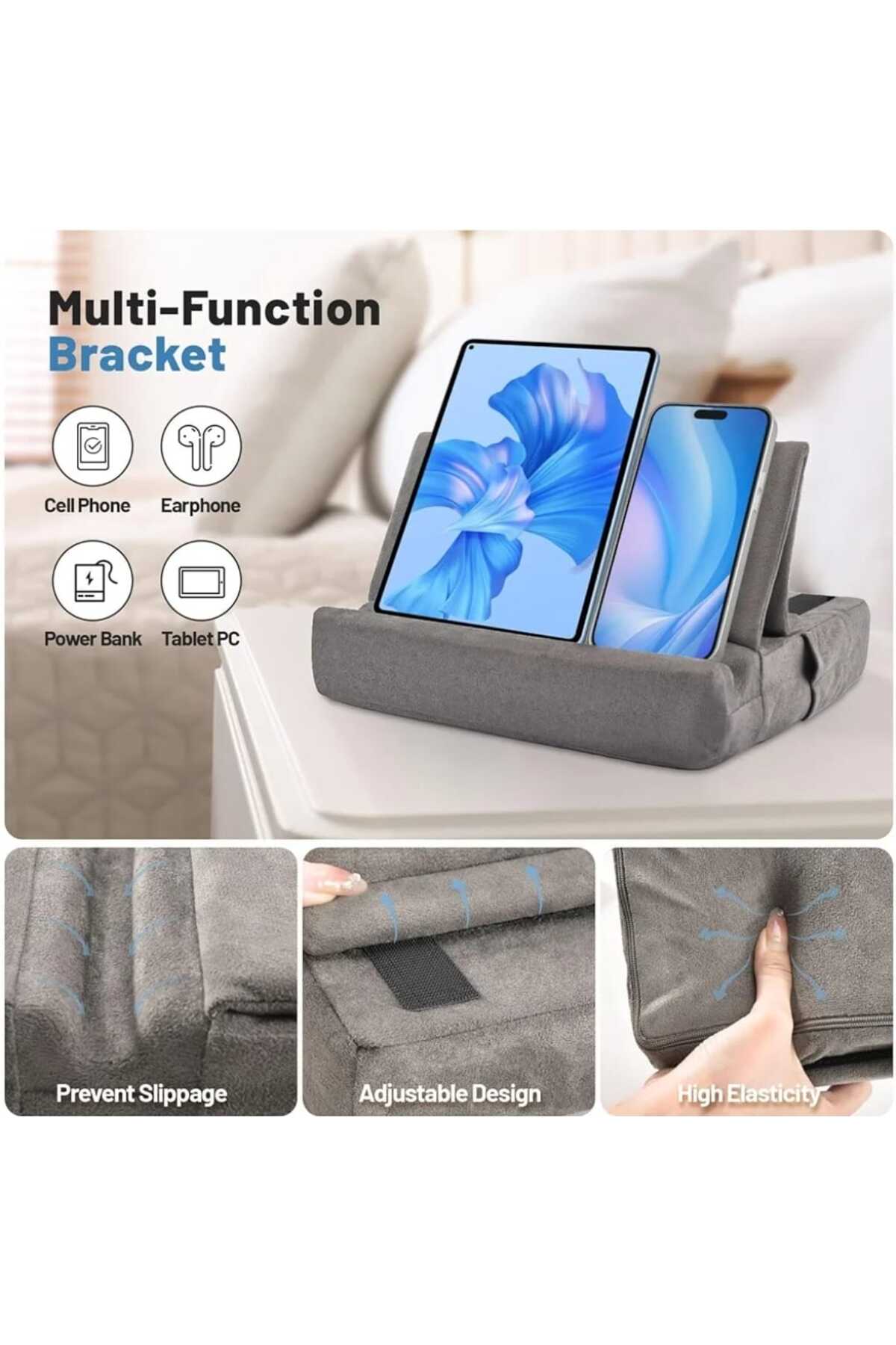 KDD Tablet stand with foldable storage stand, adjustable angle, soft, GREY features