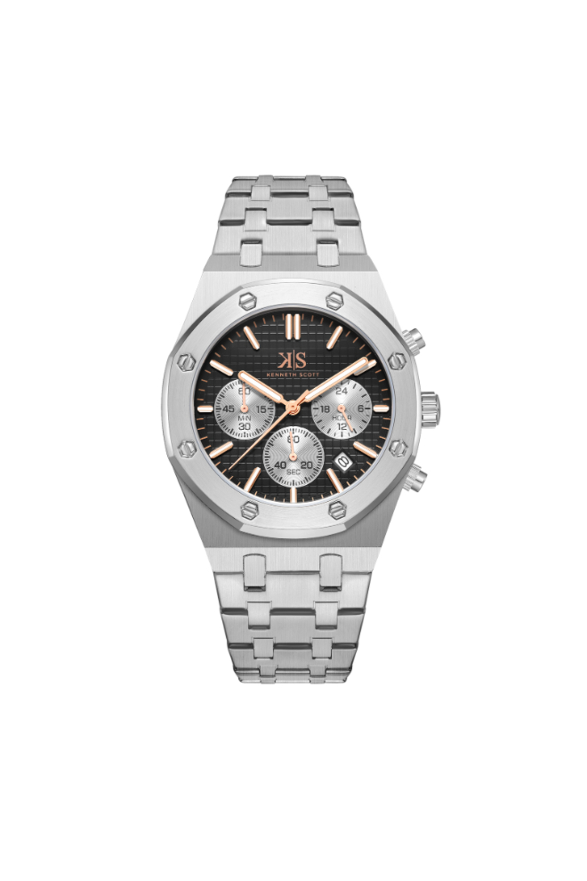 Kenneth Scott Men Multi Function Black Dial Watch - K24112-SBSB features