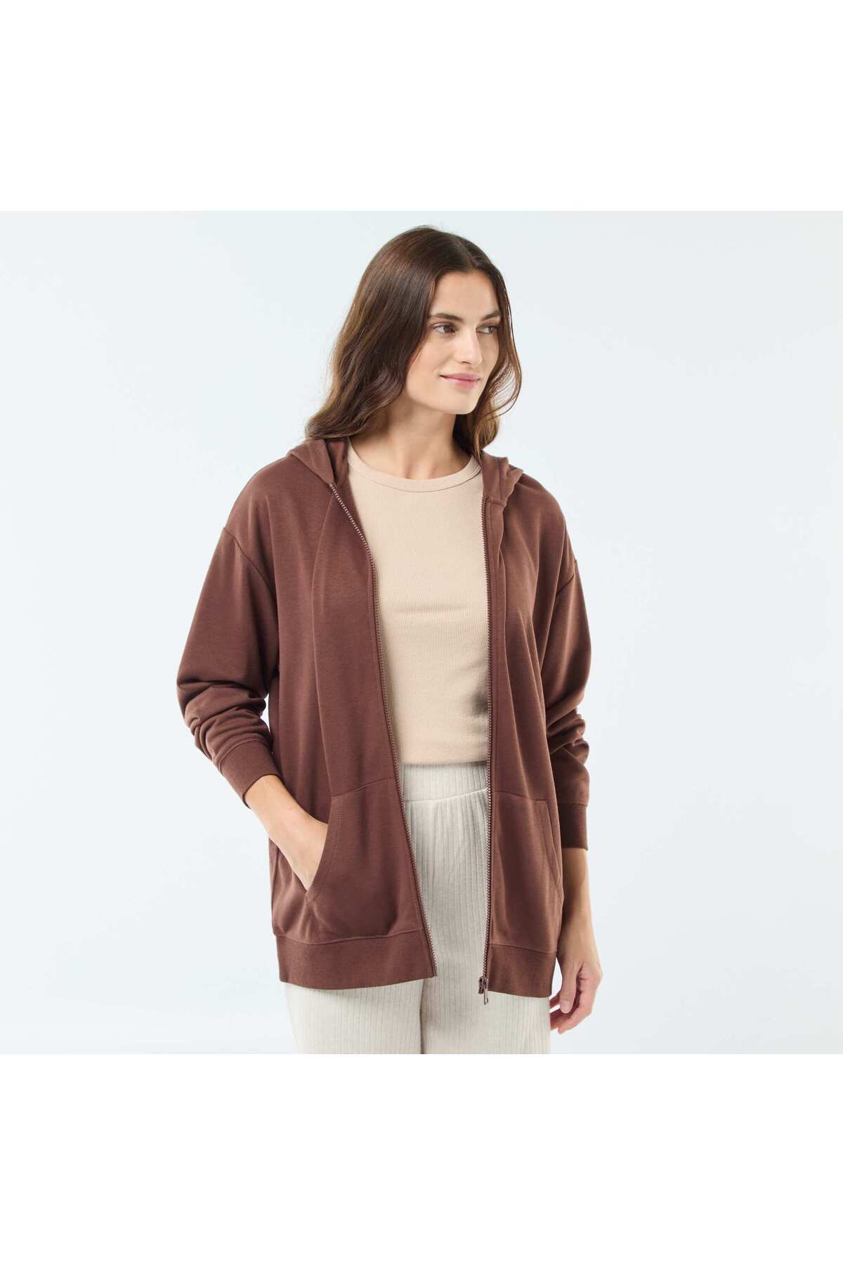 KİABİ Plain Hooded Cardigan BROWN features