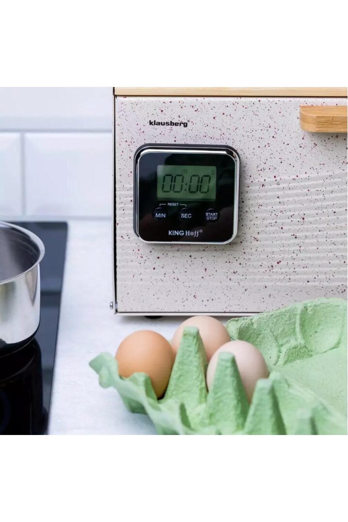 Kinghoff Kitchen timer, black, electric, magnetic holder,
