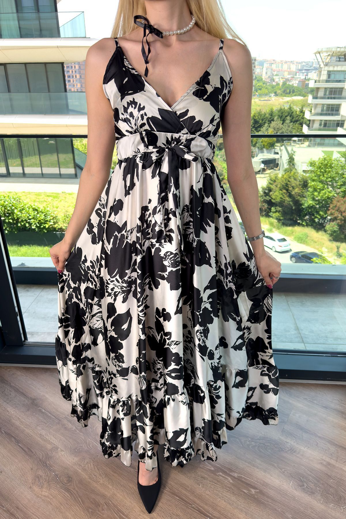 Kir Patterned Chiffon Dress - Envelope Cut