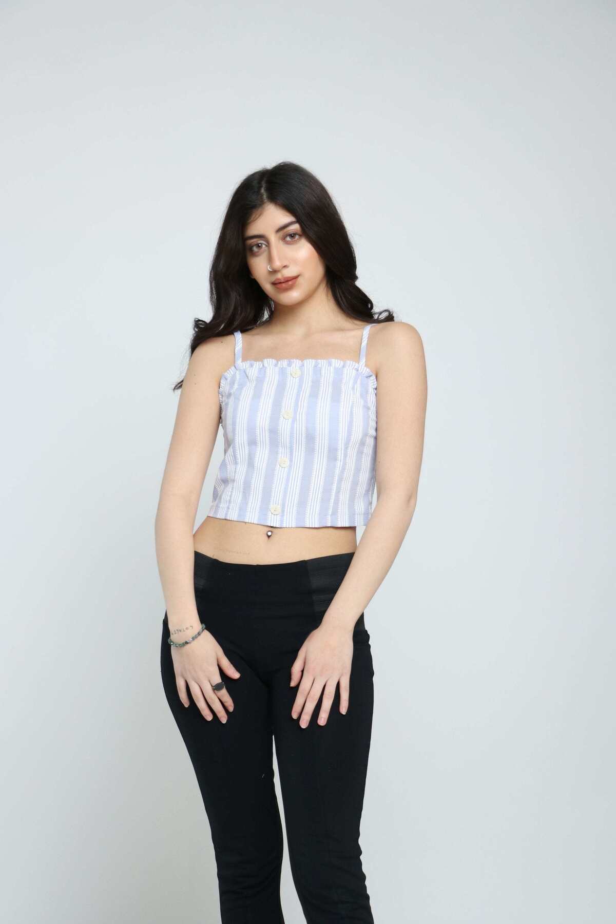 Kitschen Striped Square-Neck Top features