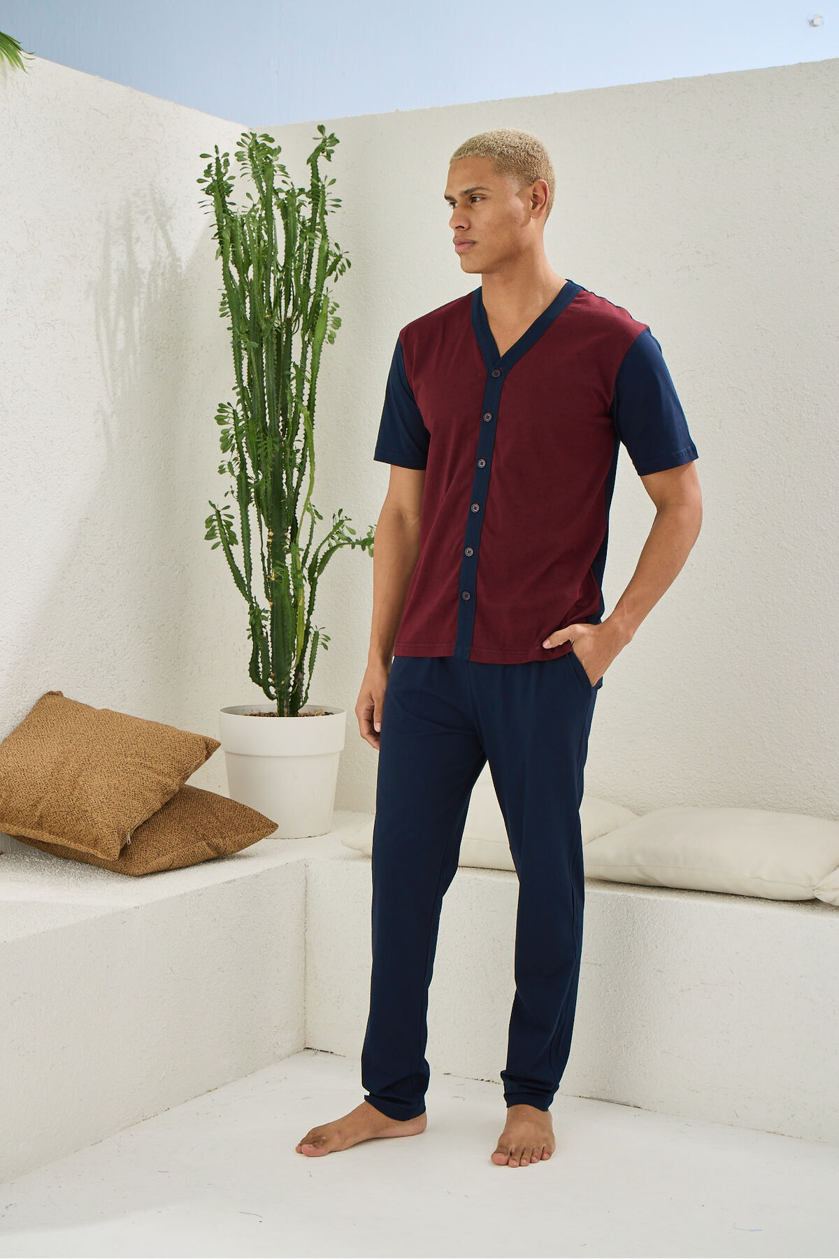KLY 2108 V-Neck Full Length Buttoned Pajama Set