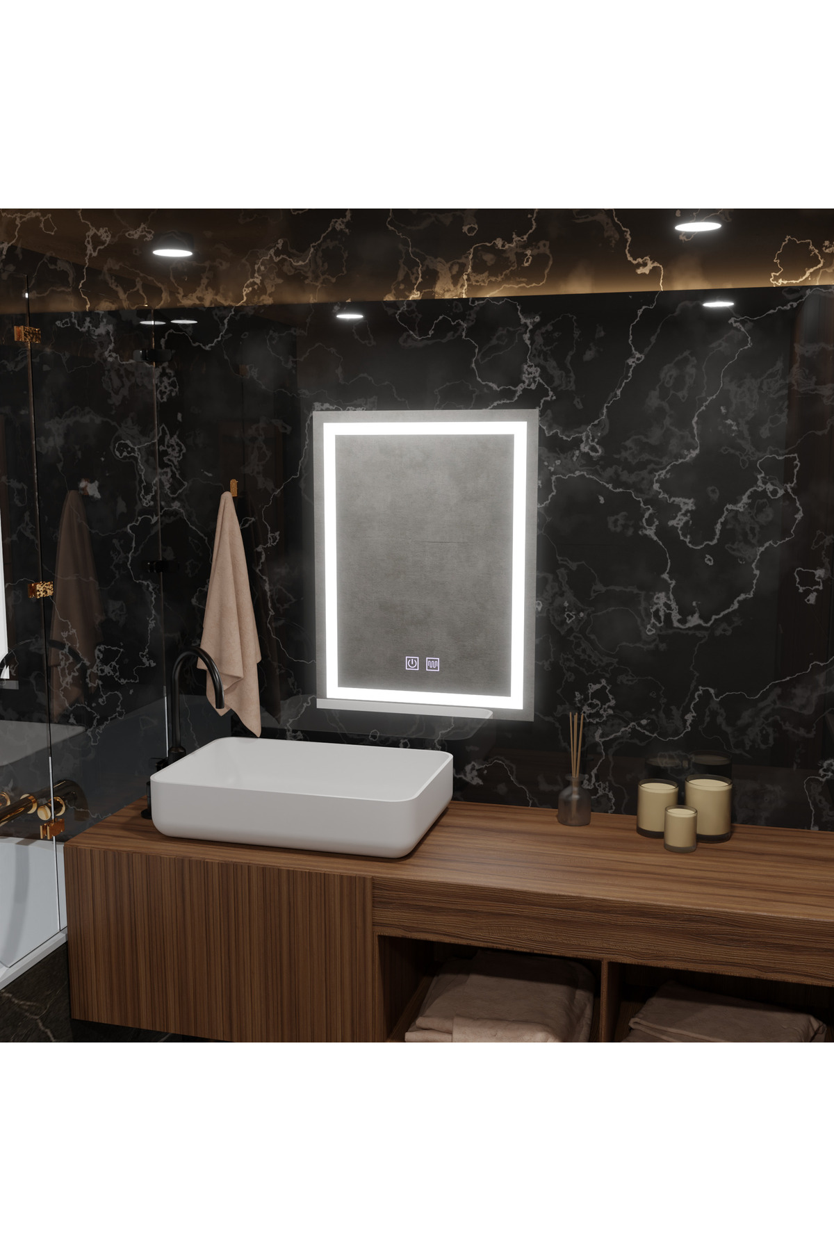 KORMAN Rectangular LED Mirror, 45x60cm, RADIANTE Touch, Defog System, Dimmable features