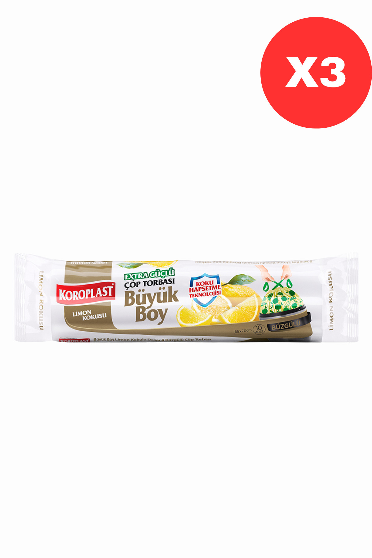Koroplast Extra Strong Odor Locking Lemon Scented, Drawstring Large Size Garbage Bag 10 Pcs X3 features