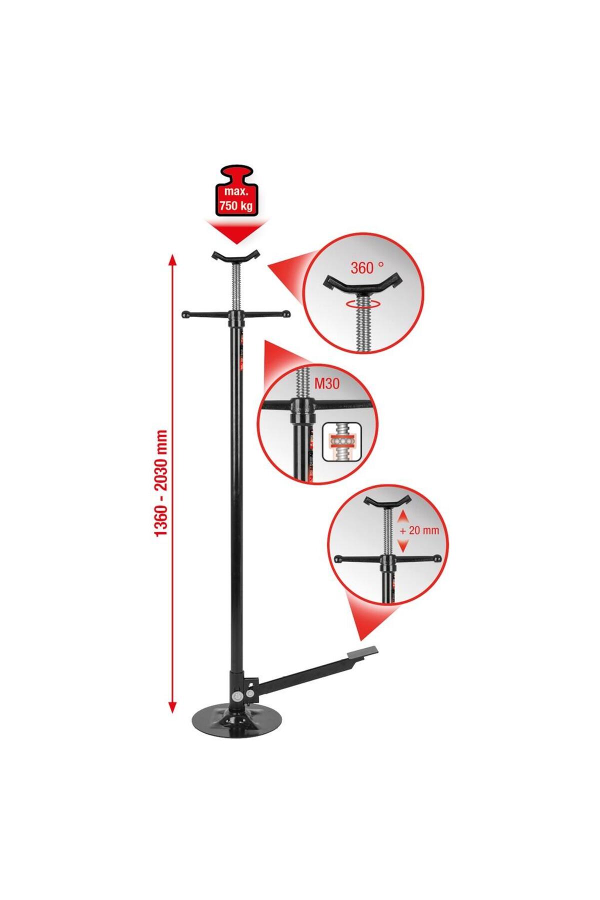 Reglaj fără trepte, Ajustare precisă, Rulmenți axiali, Ușor de utilizat, Oțel durabil, Capacitate de ridicare 750 kg, Dimensiuni compacte, Greutate de 15 kg, Înălțime reglabilă între 1360 mm și 2030 mm