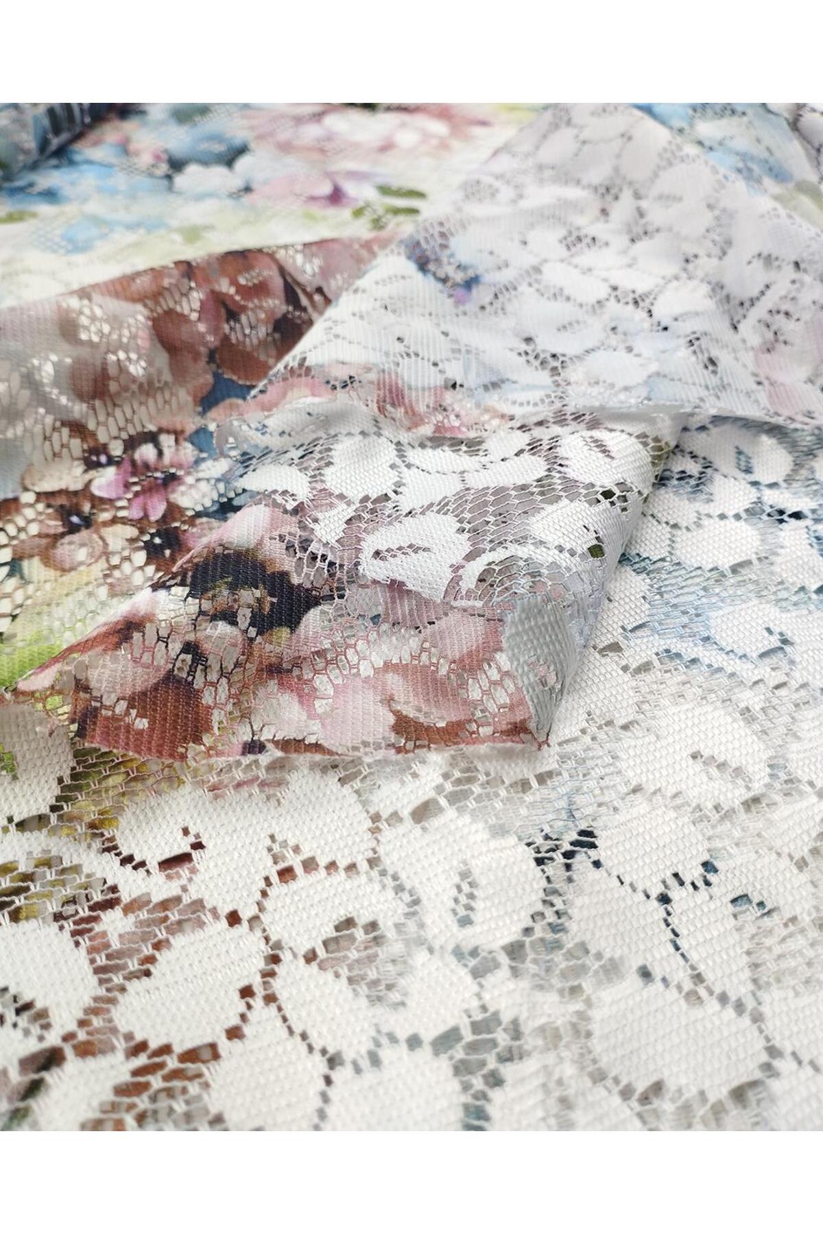 Kumaş Parça Flower Patterned Thin Lacewidth: 160 cm
