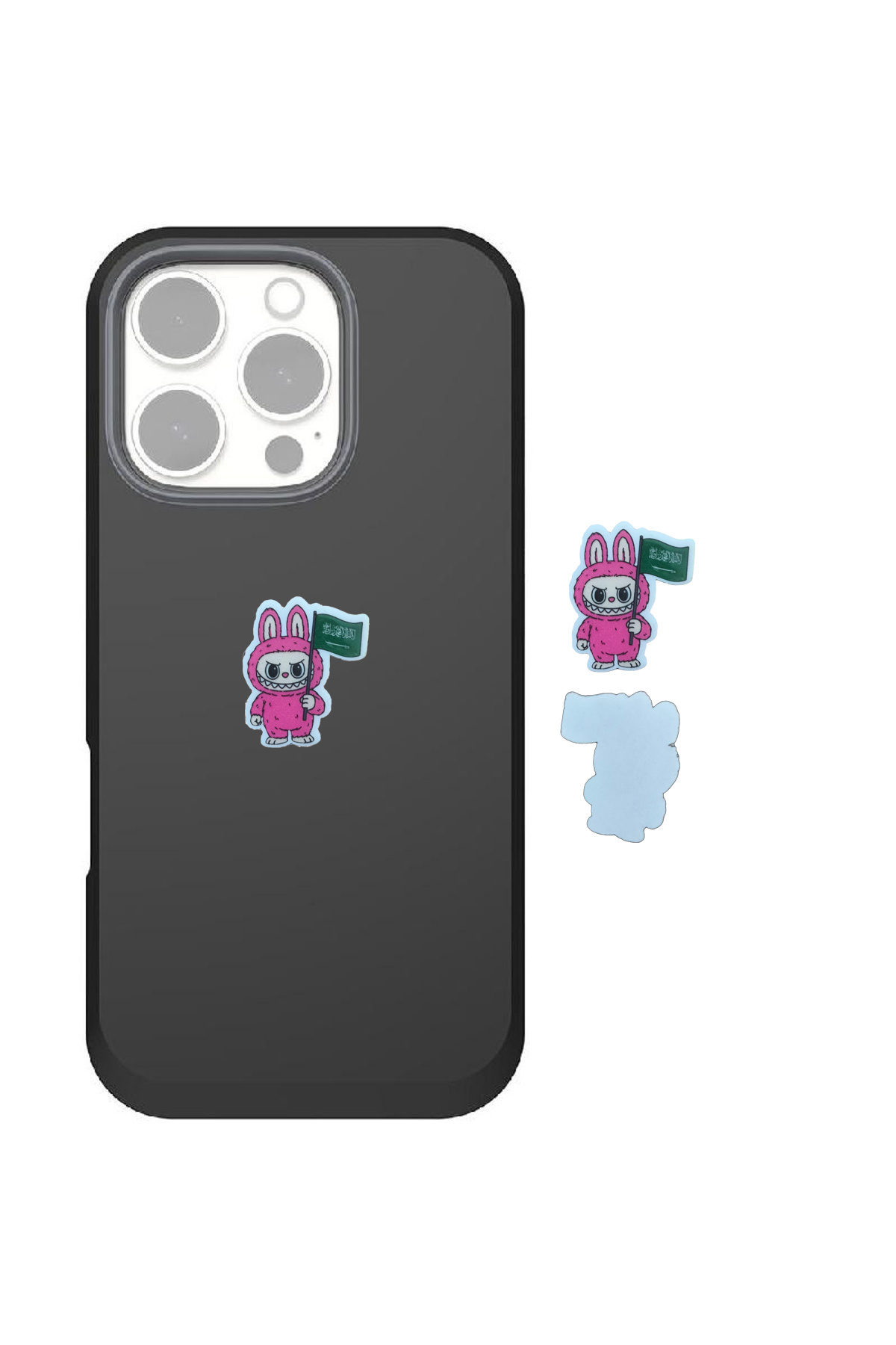 LABUBU Metal Sticker for Mobile or An Smooth Surface Shape of Labubu with Saudi Flag