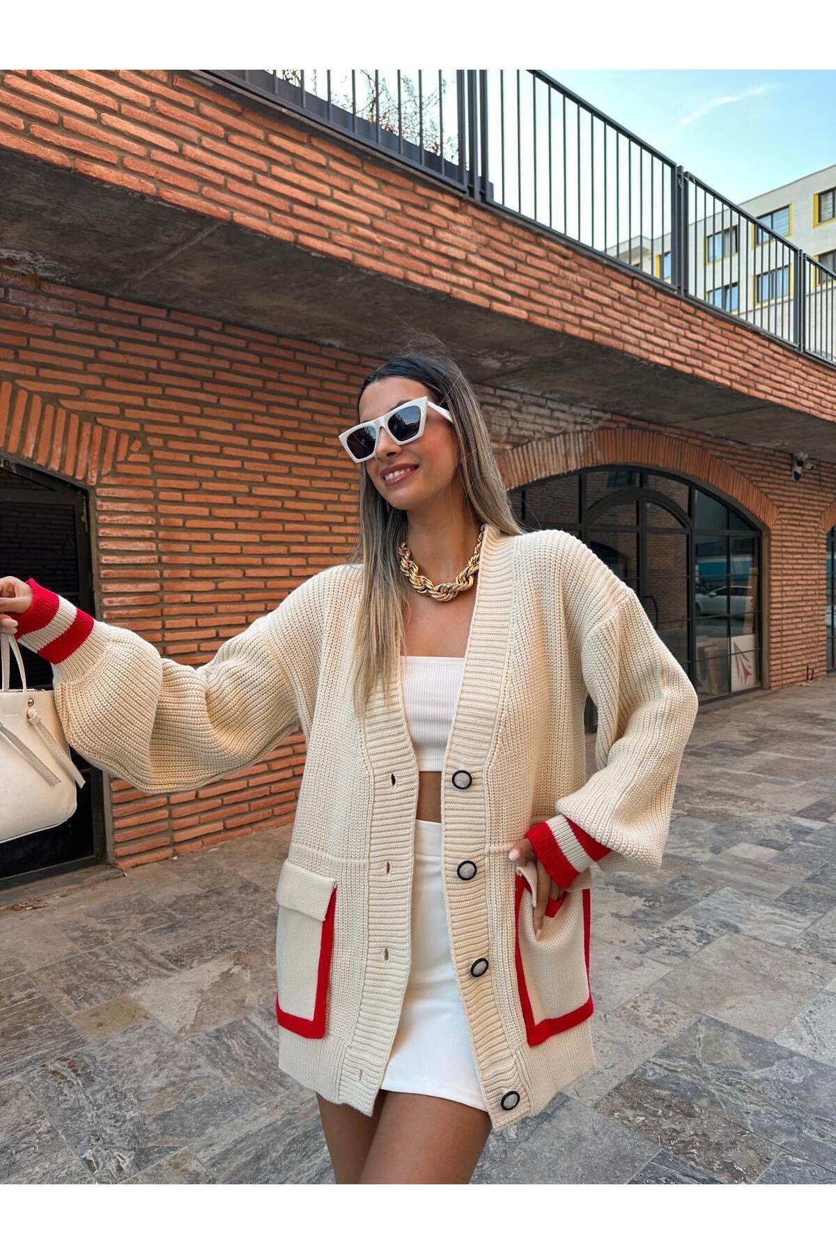 Lady Pixie Knitted Pocket Striped Cardigan features