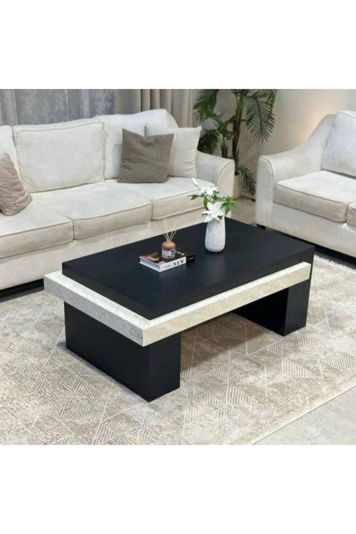 LAMST Black Oak Serving Table with Marble Top features