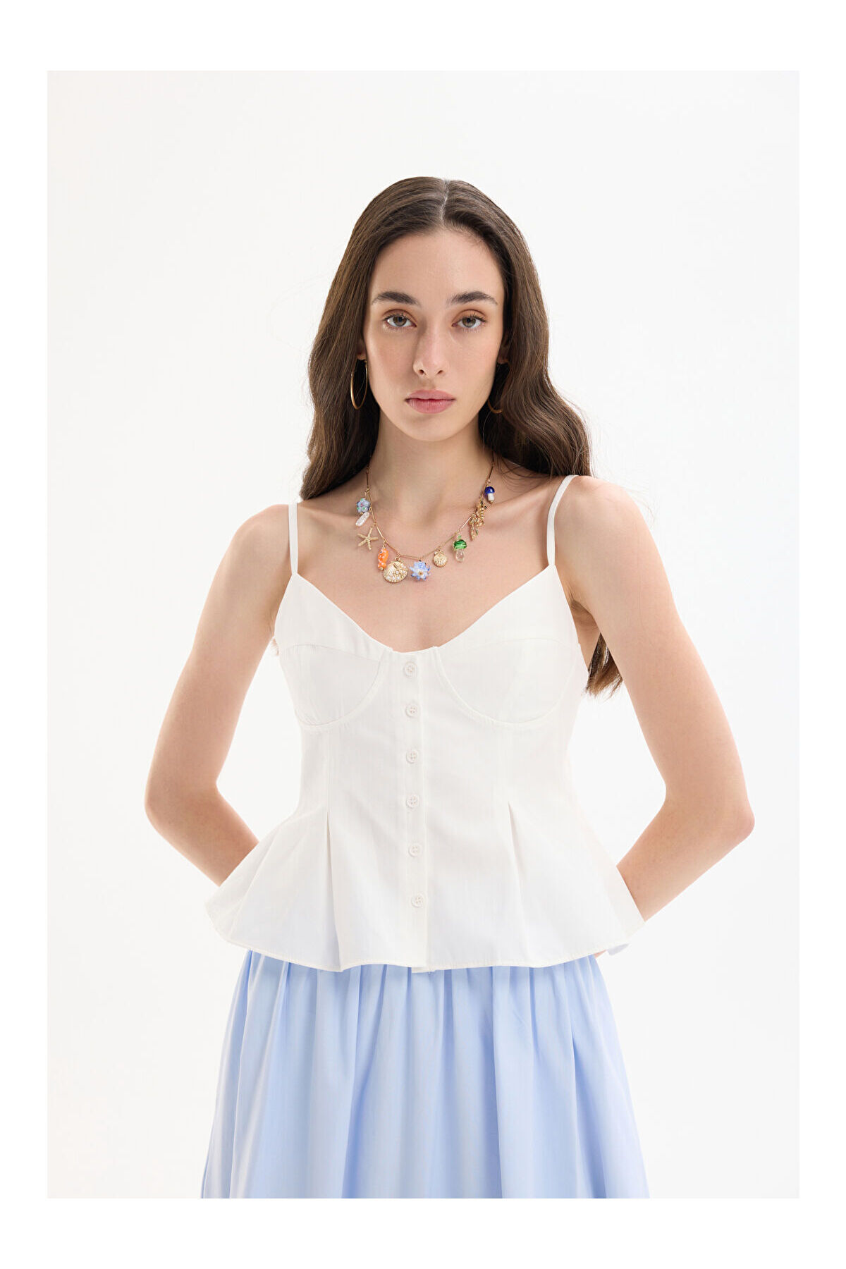 LC Waikiki Buttoned Thin Strap Blouse with Pile Detail Ecru