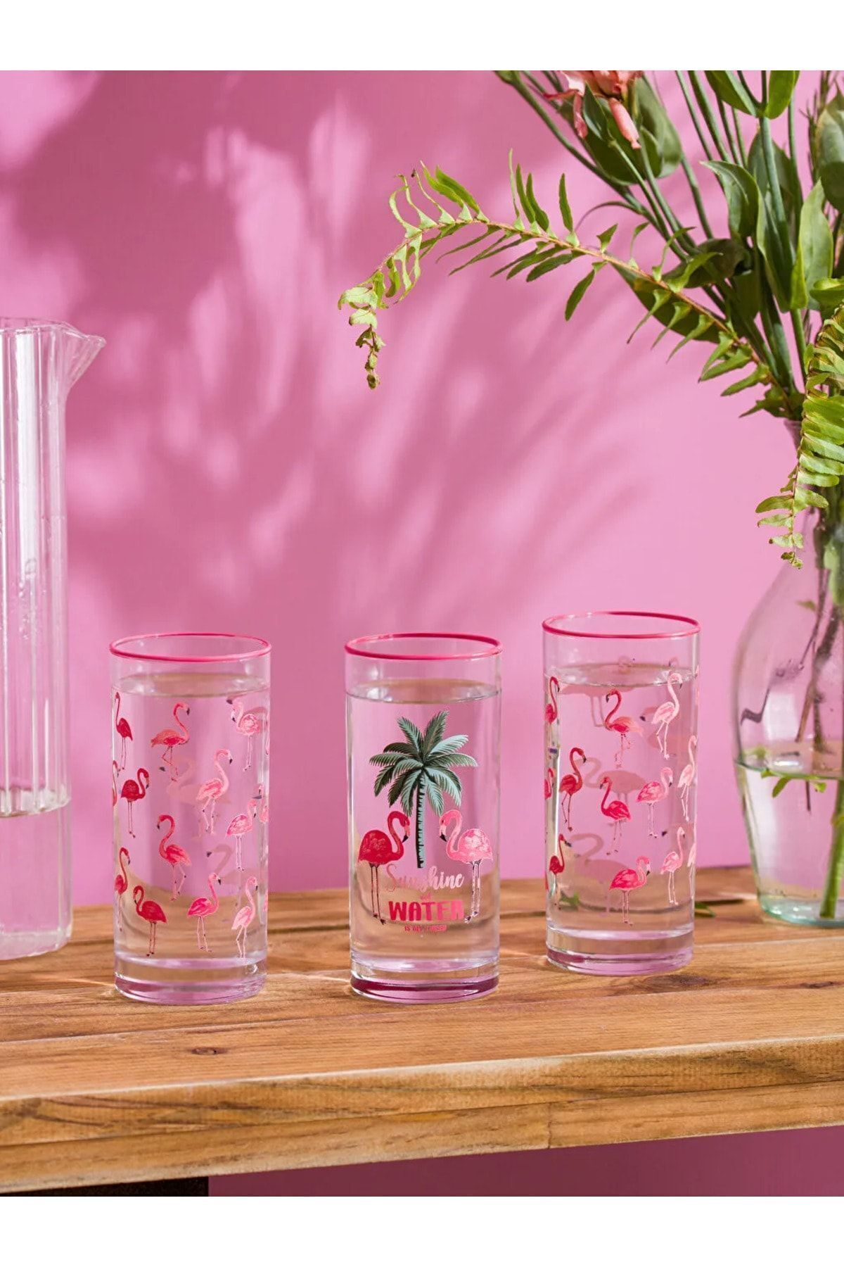 LC Waikiki Lcw Home Flamingo Printed Glass Set of 3 features