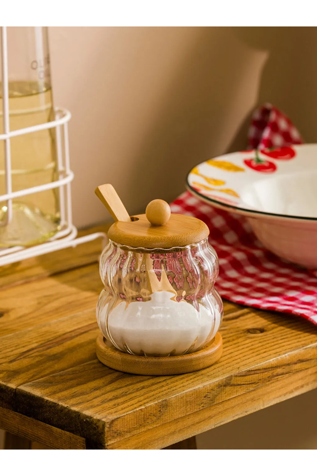 LC Waikiki Lcw Home Colorless Glass Storage Container with Wooden Lid 300 ml