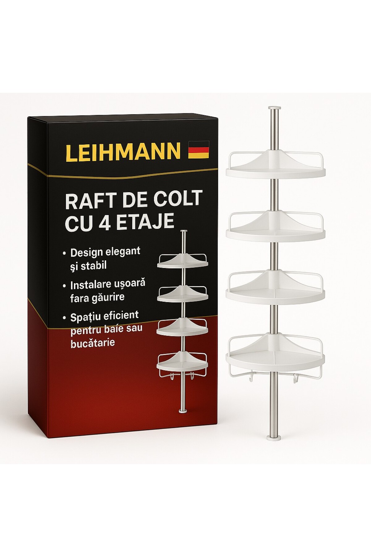 LEIHMANN Corner bathroom shelf features