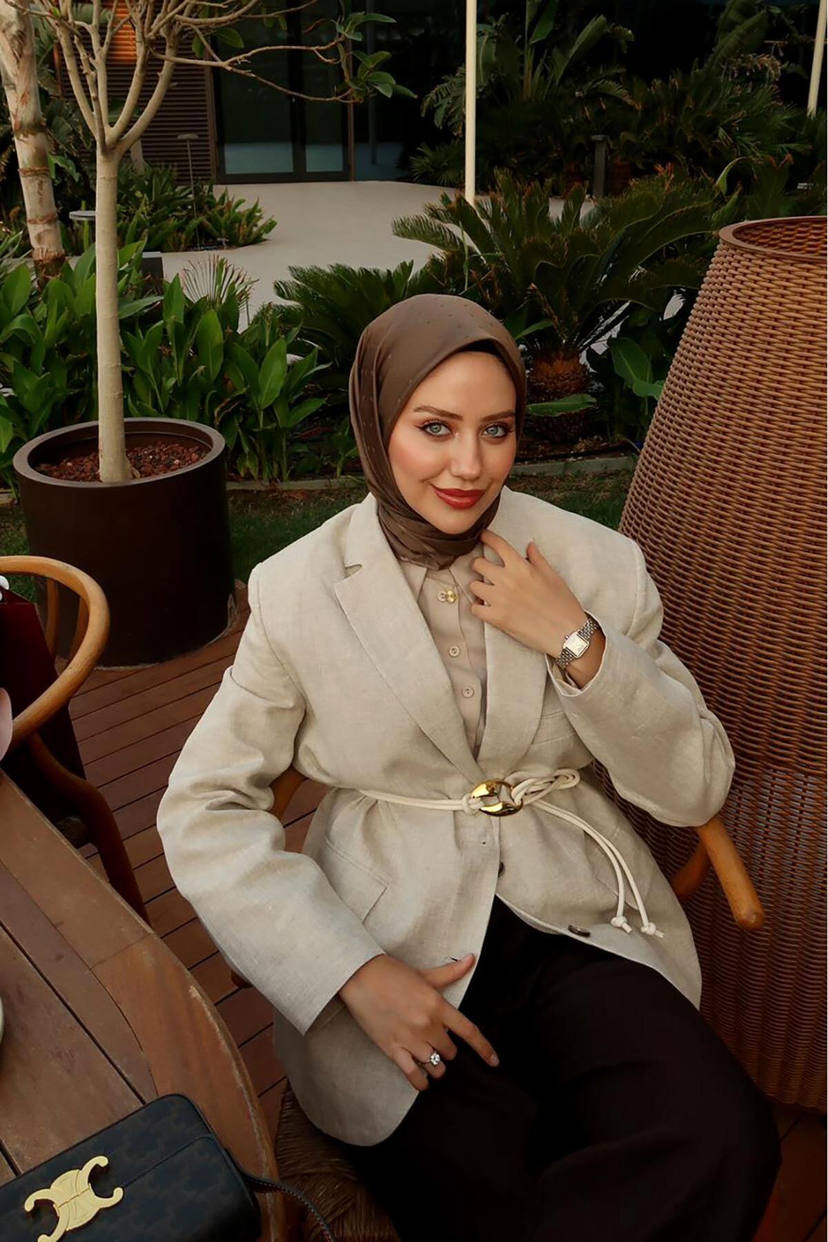 Levidor A.Brown Speckle Pattern Monogram Silk Scarf features