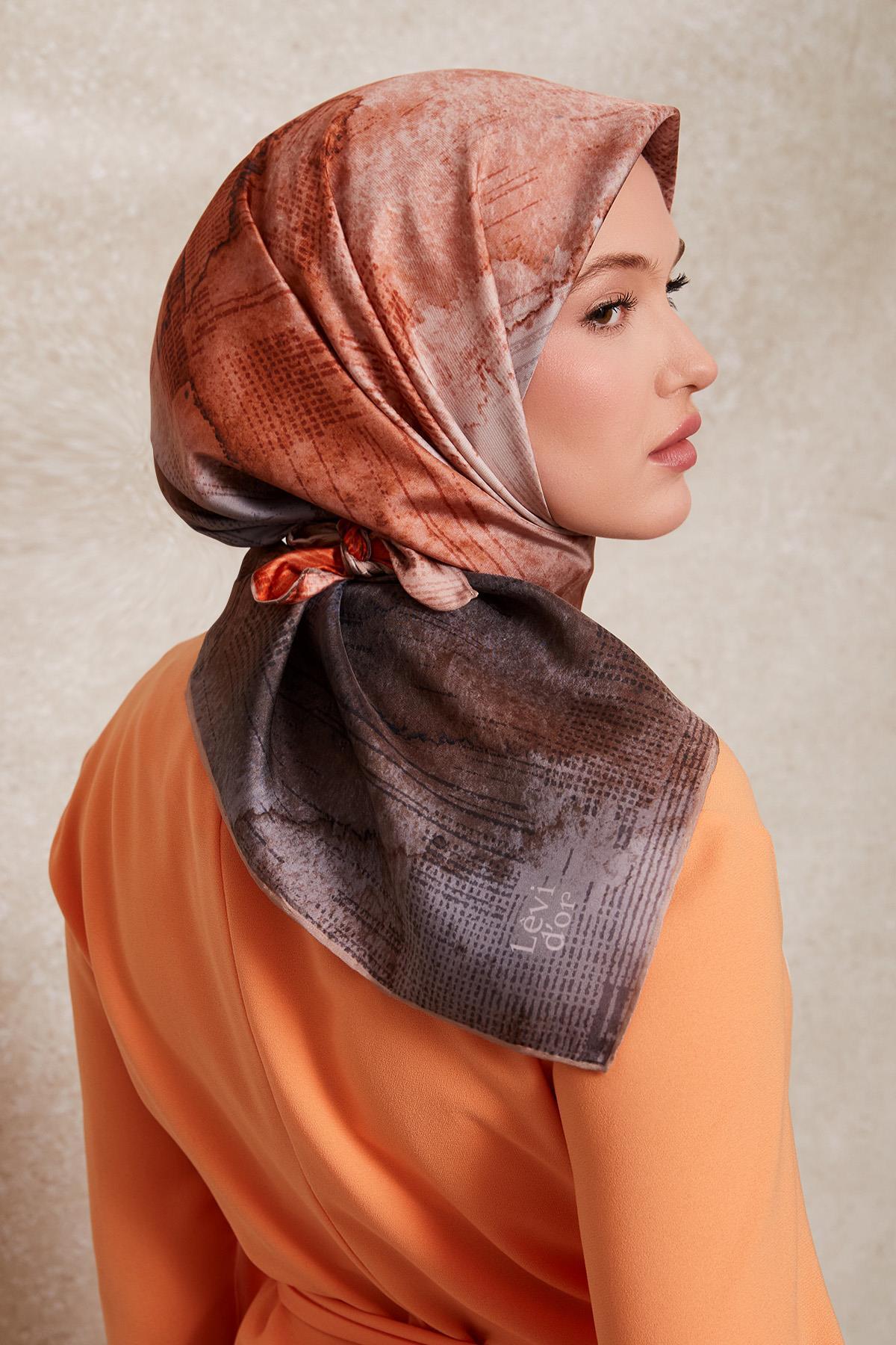 Levidor Gray Patterned Twill Silk Scarf features