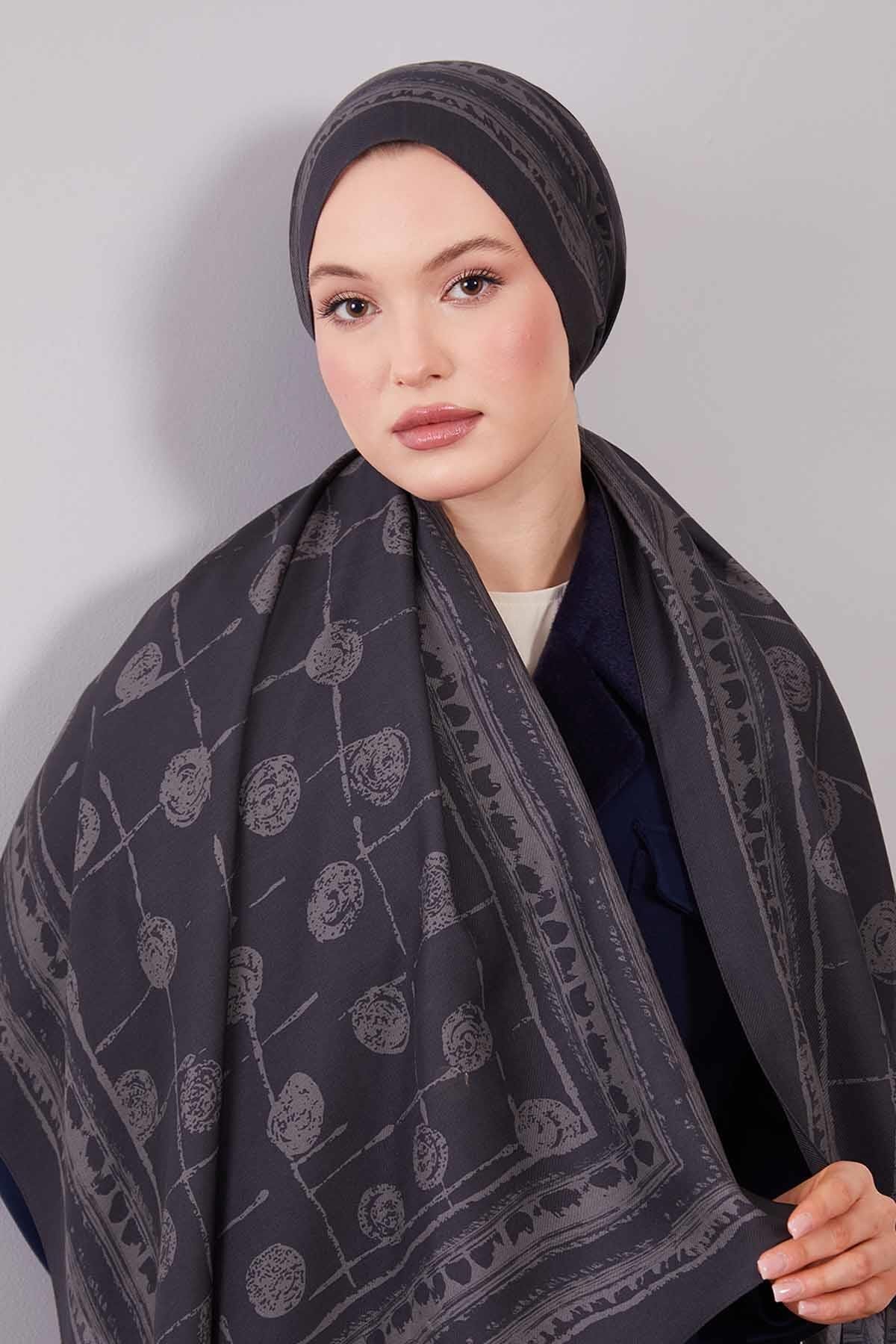 Levidor Gray Round Patterned Wool Silk Shawl features