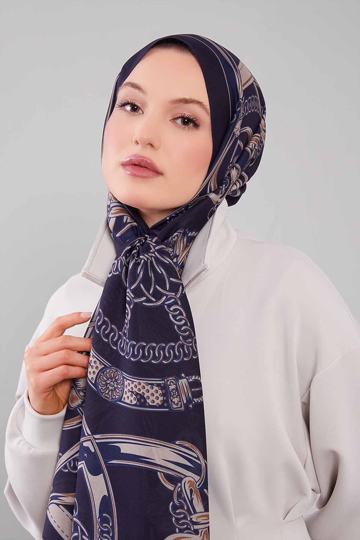 Levidor Navy Blue Mixed Patterned Wool Silk Shawl features
