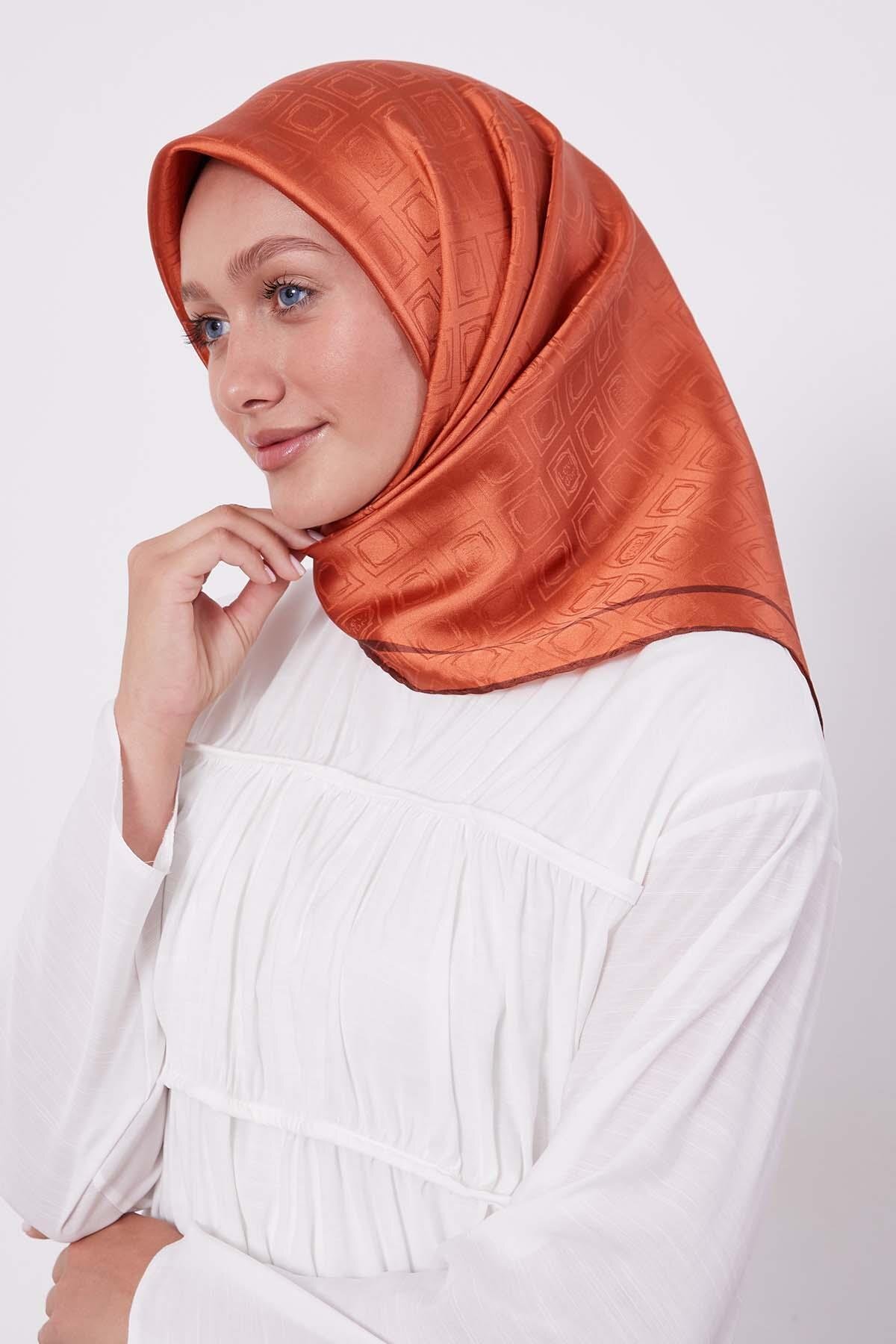 Levidor Orange Baklava Pattern Monogram Silk Scarf features