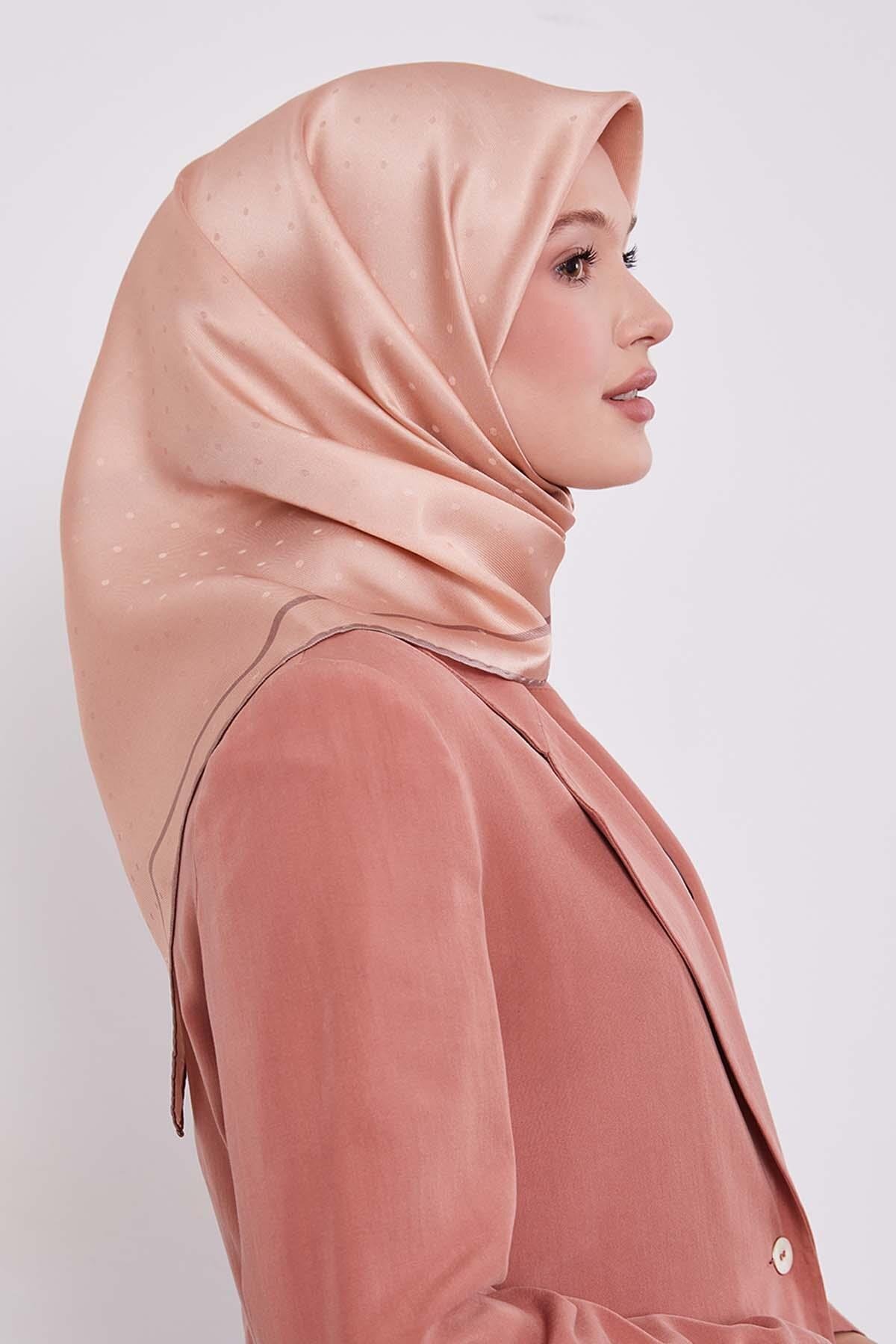Levidor Salmon Speckle Pattern Monogram Silk Scarf features