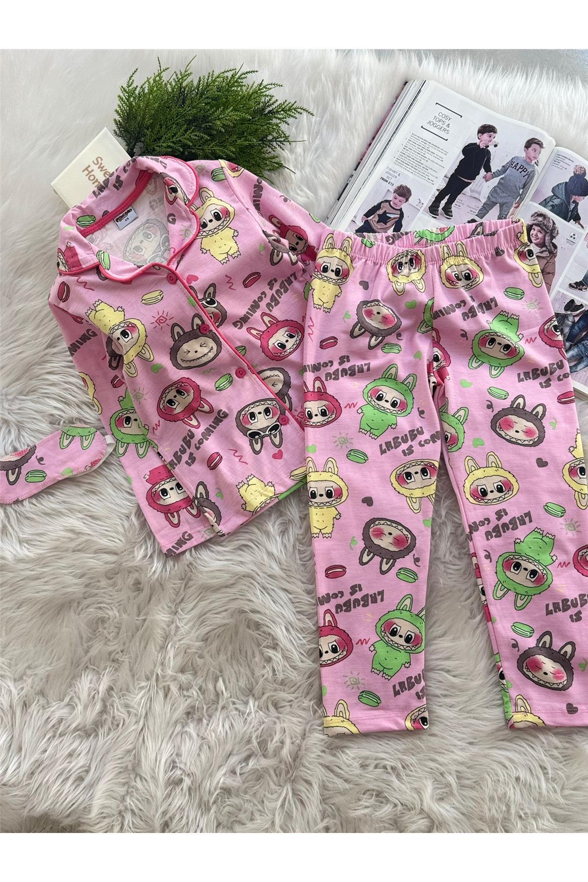 LİLLYPİCCA Girl's Patterned Eye Patch Buttoned Pajama Set
