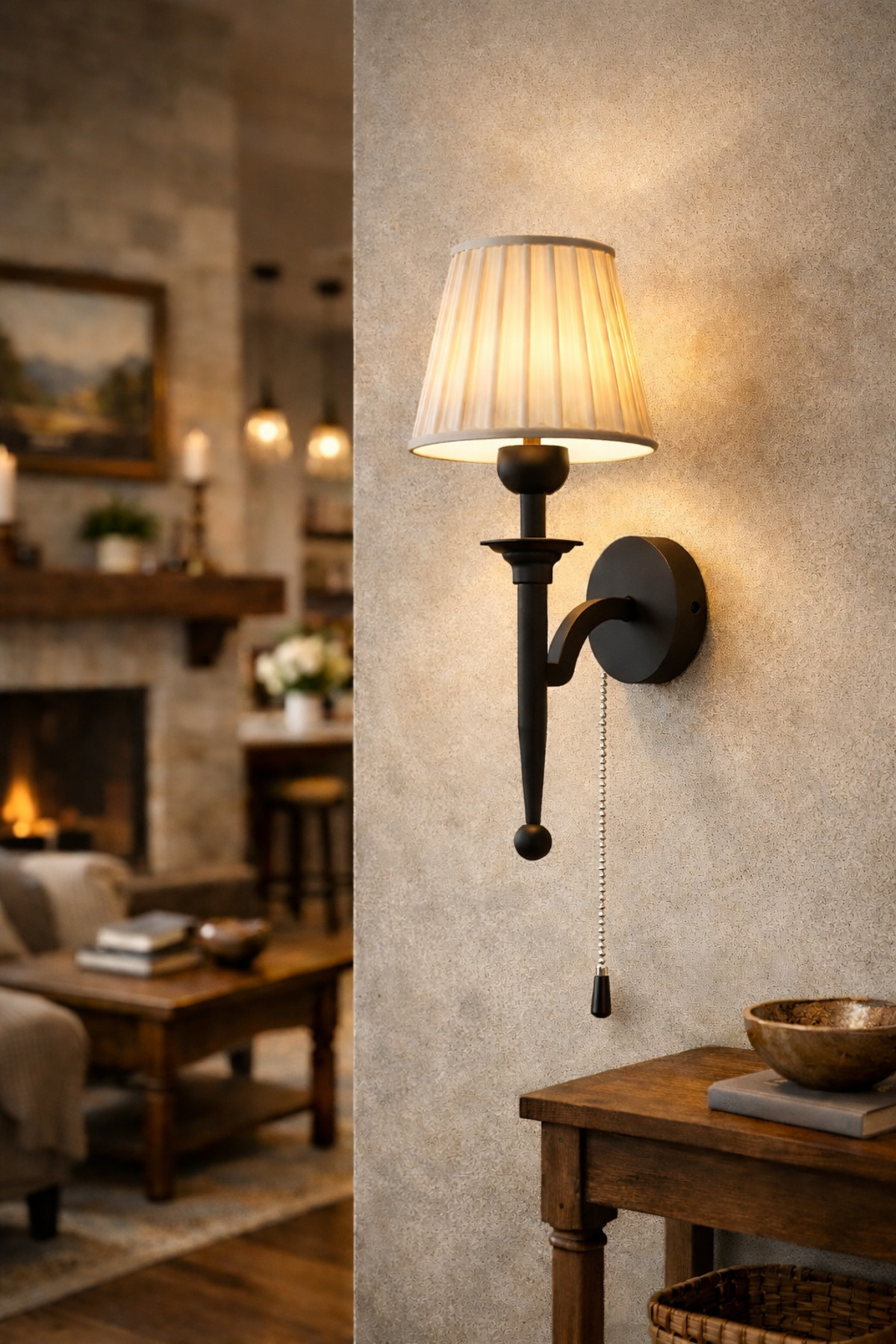 Limon 3D Desing Modern Wall Sconce with Chain Switch Decorative Bedside Lighting E27 Compatible features
