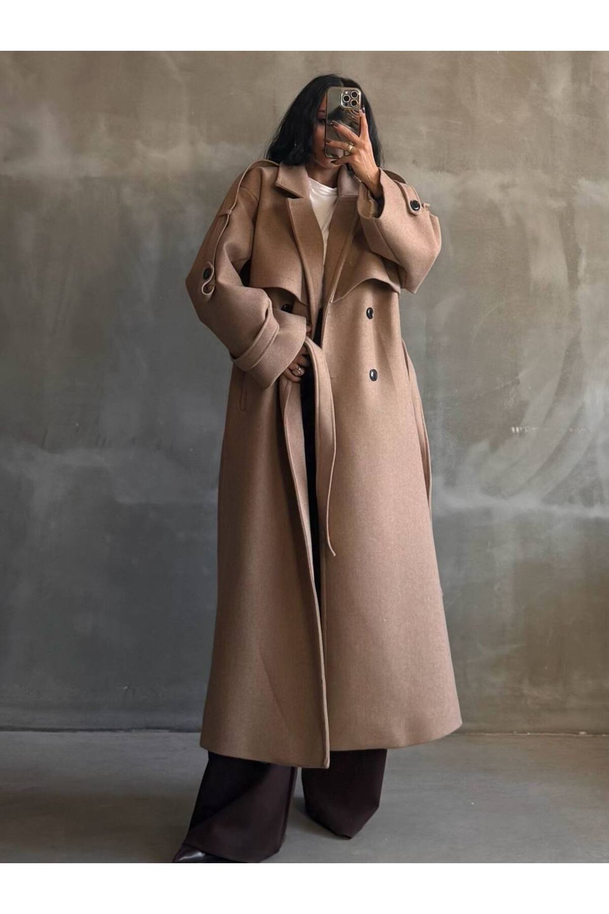 LİNDALİNA TEKSTİL Belted Stamp Coat