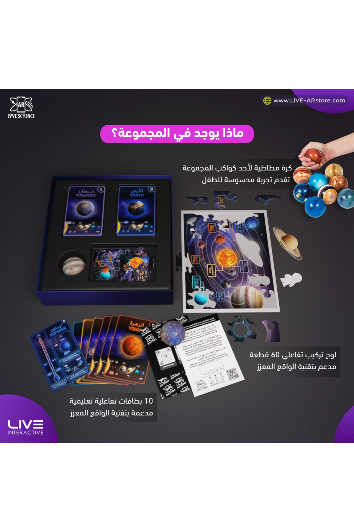 Includes 10 interactive solar system planet cards, engaging games, a unique puzzle, a rubber ball shaped like a planet for sensory experience, a portal that takes your child to space interactively, curious and intriguing information (e.g., eclipses, day and night, seasons), and an interactive way to calculate your child's weight and age if they were on another planet.
