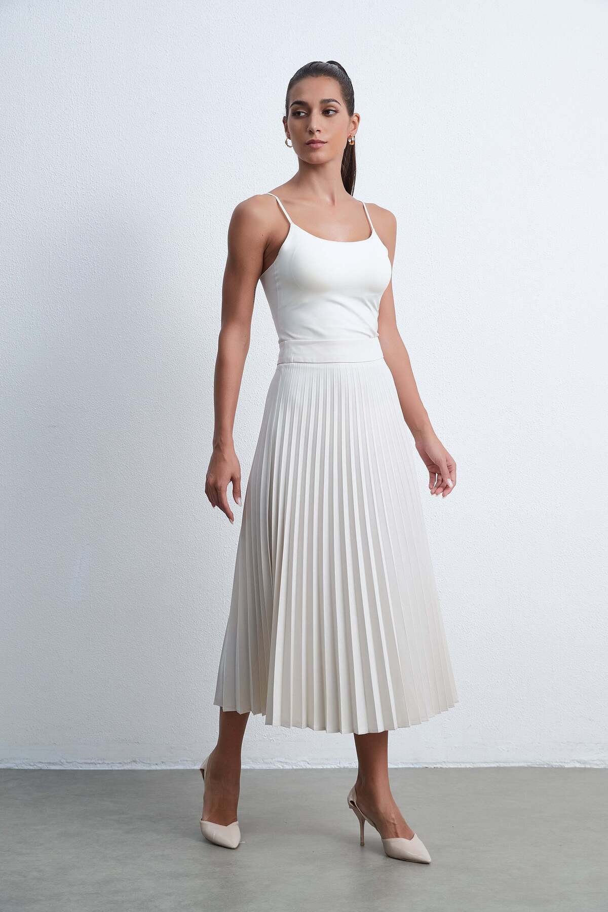 Livia Solid Pleated Midi Skirt features