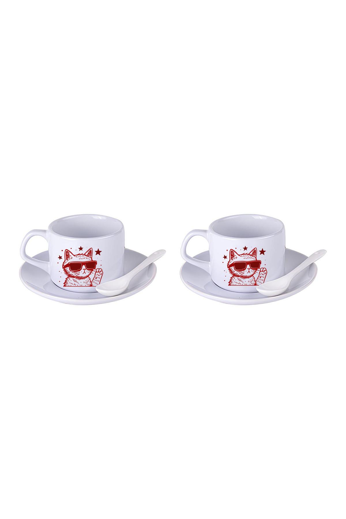LIWOGY Cat Patterned Tea & Coffee Cup Set with Double Spoon features