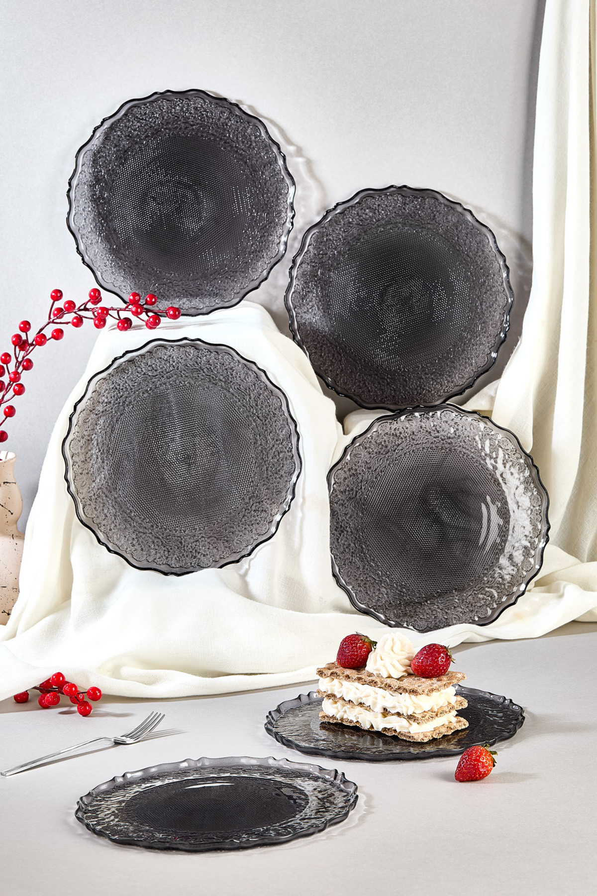 Lora Bianca Tapestry 6 Piece Cake Serving Plate Set features