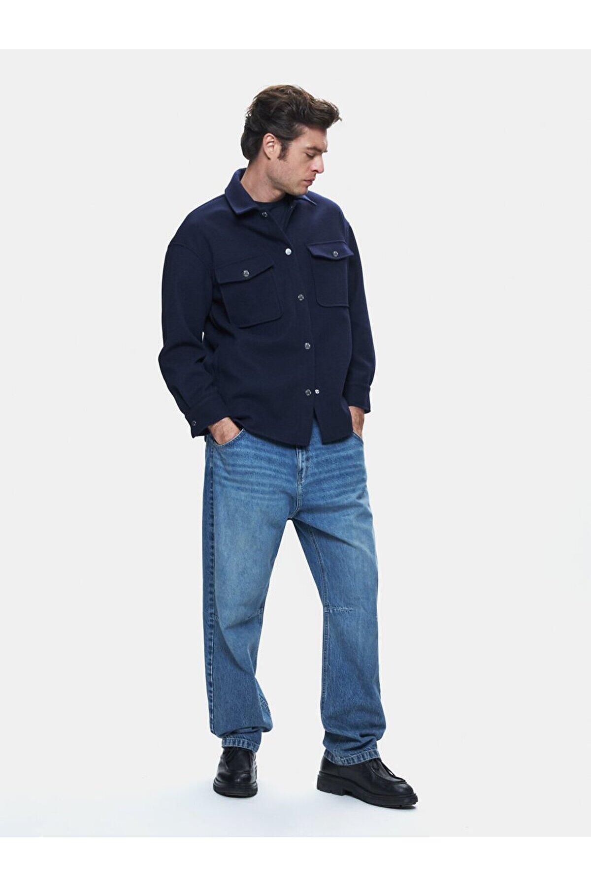 Ltb Long Sleeve Buttoned Navy Blue Jacket features