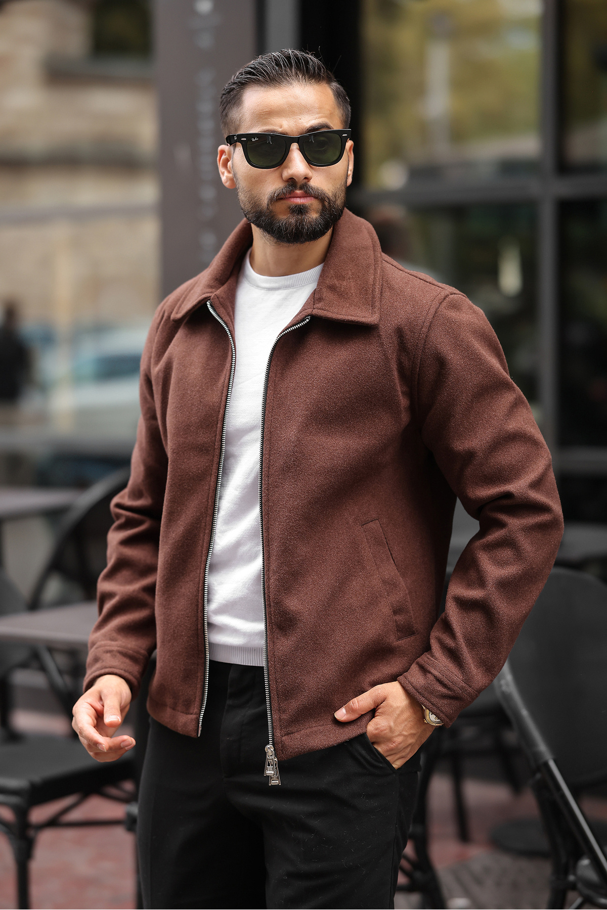 LUMAST Special Double Zipper Design Basic Cashmere Jacket features