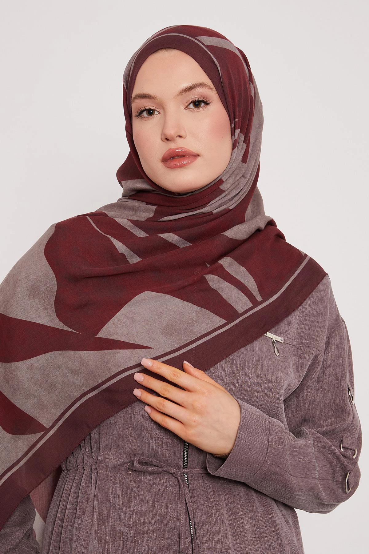 LuvenSara Patterned Silk Shawl - Ruby Burgundy features
