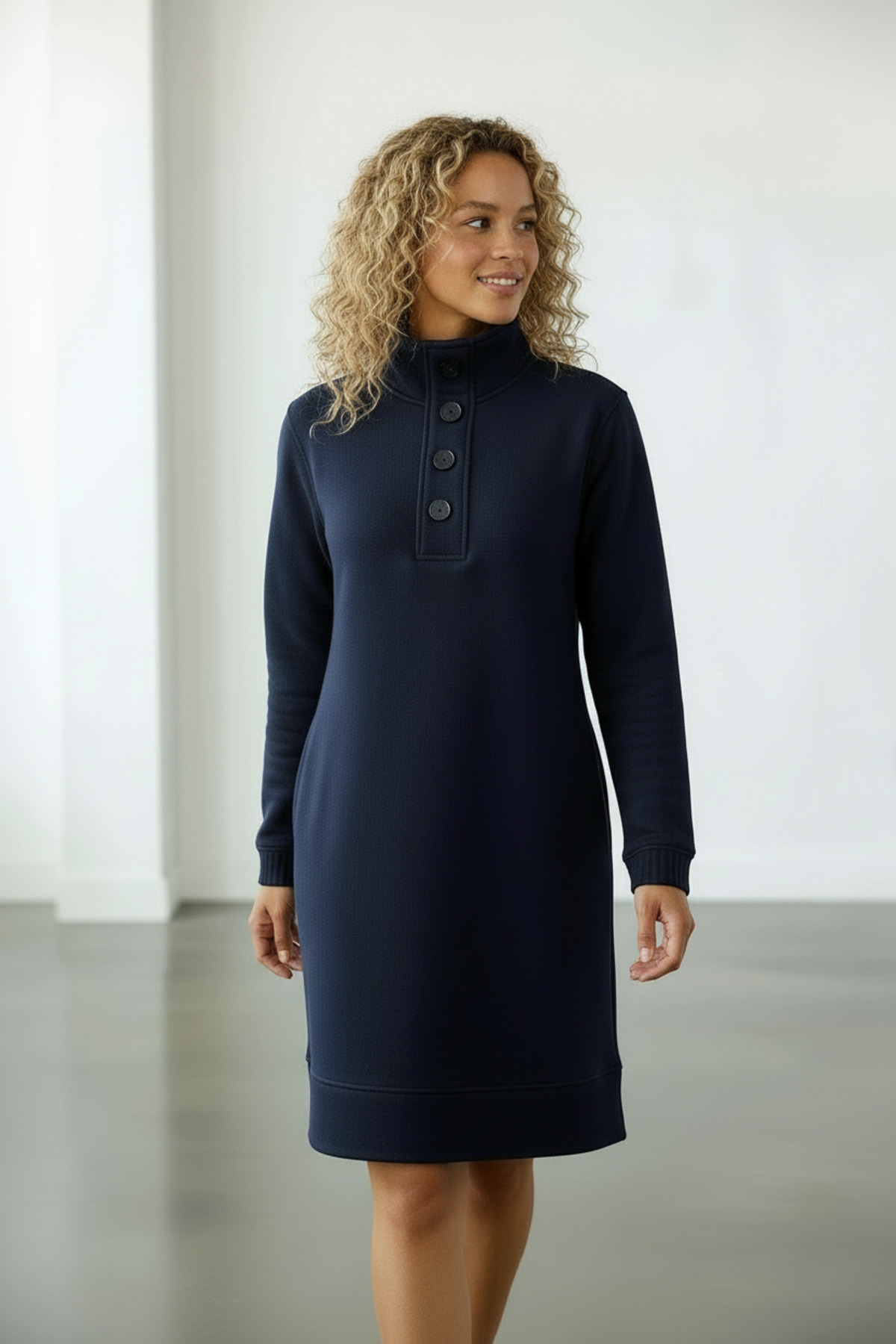 LYVEAN Three-Thread Buttoned Combed Cotton Dress features