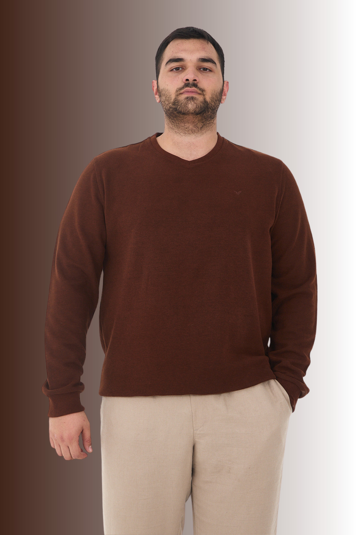 Maccali Men's Large Size V-Neck Oversized Basic Tile Sweatshirt