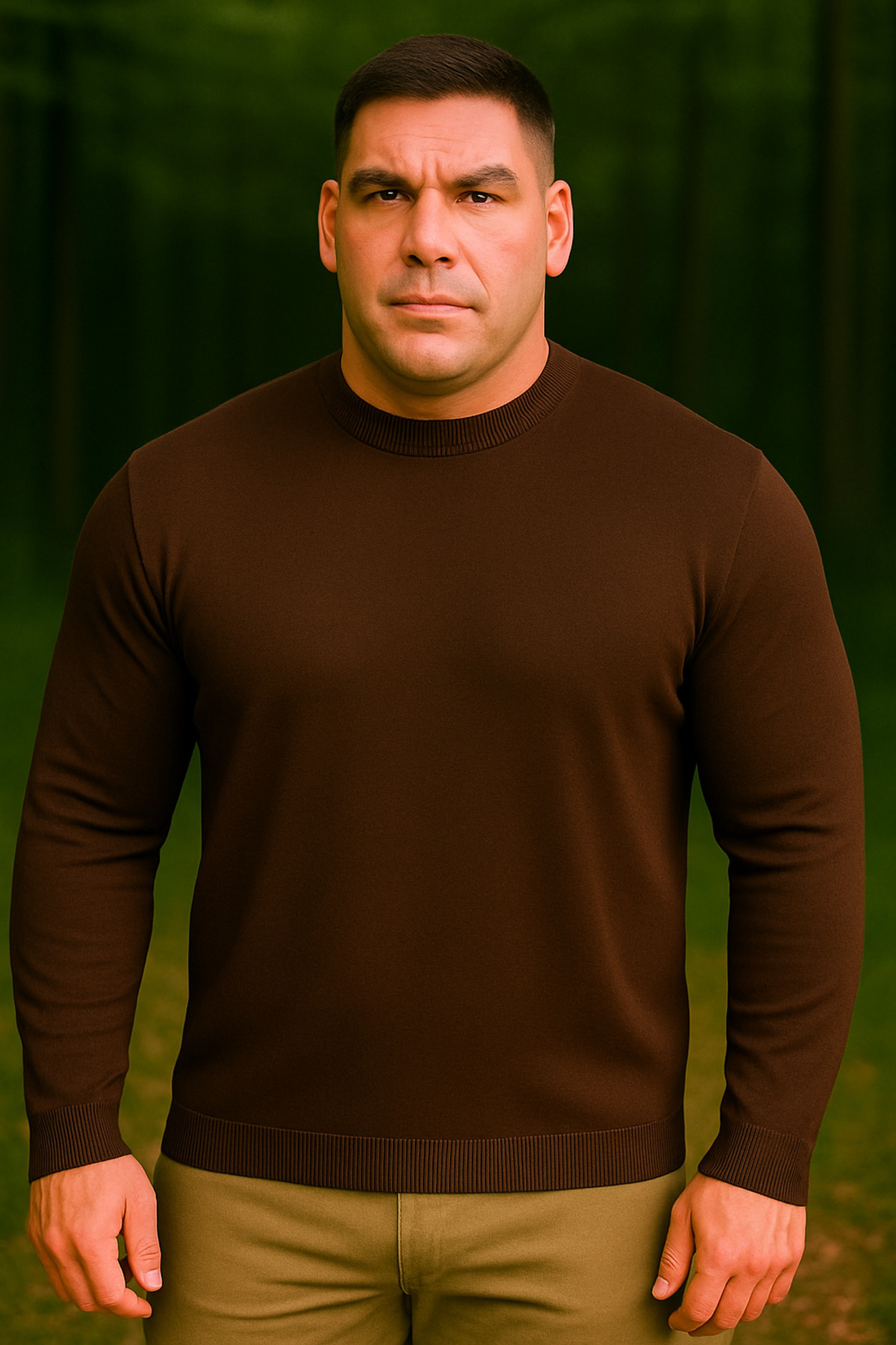 Maccali Men's Plus Size Loose Basic Brown Sweat Sweater