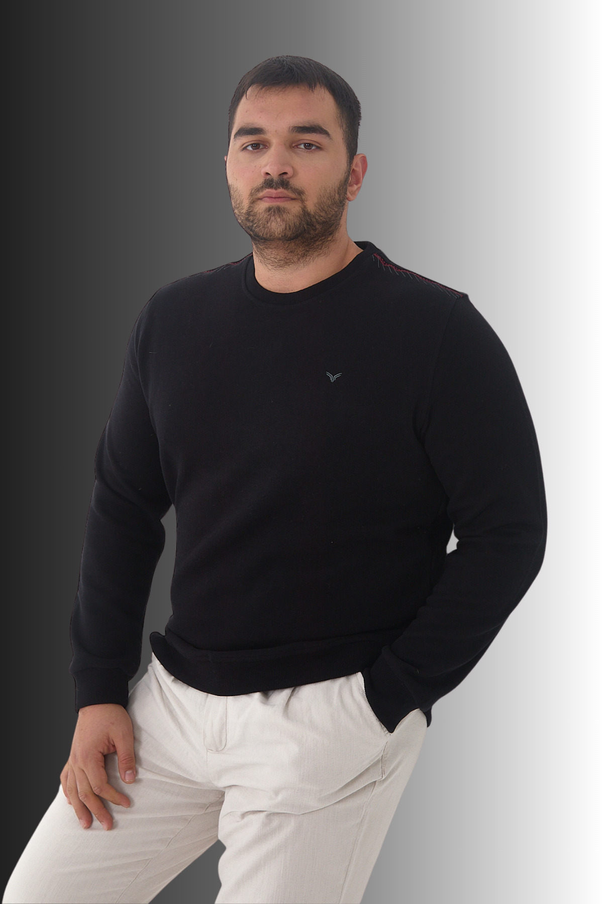 Maccali Men's Plus Size Plain Basic Oversized Black Sweatshirt features