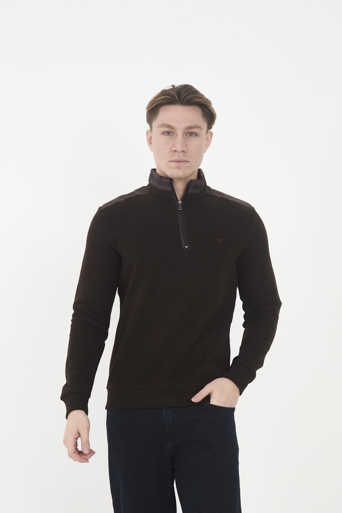 Maccali Men's Polarcore Half Zip Basic Plain Brown Sweatshirt features