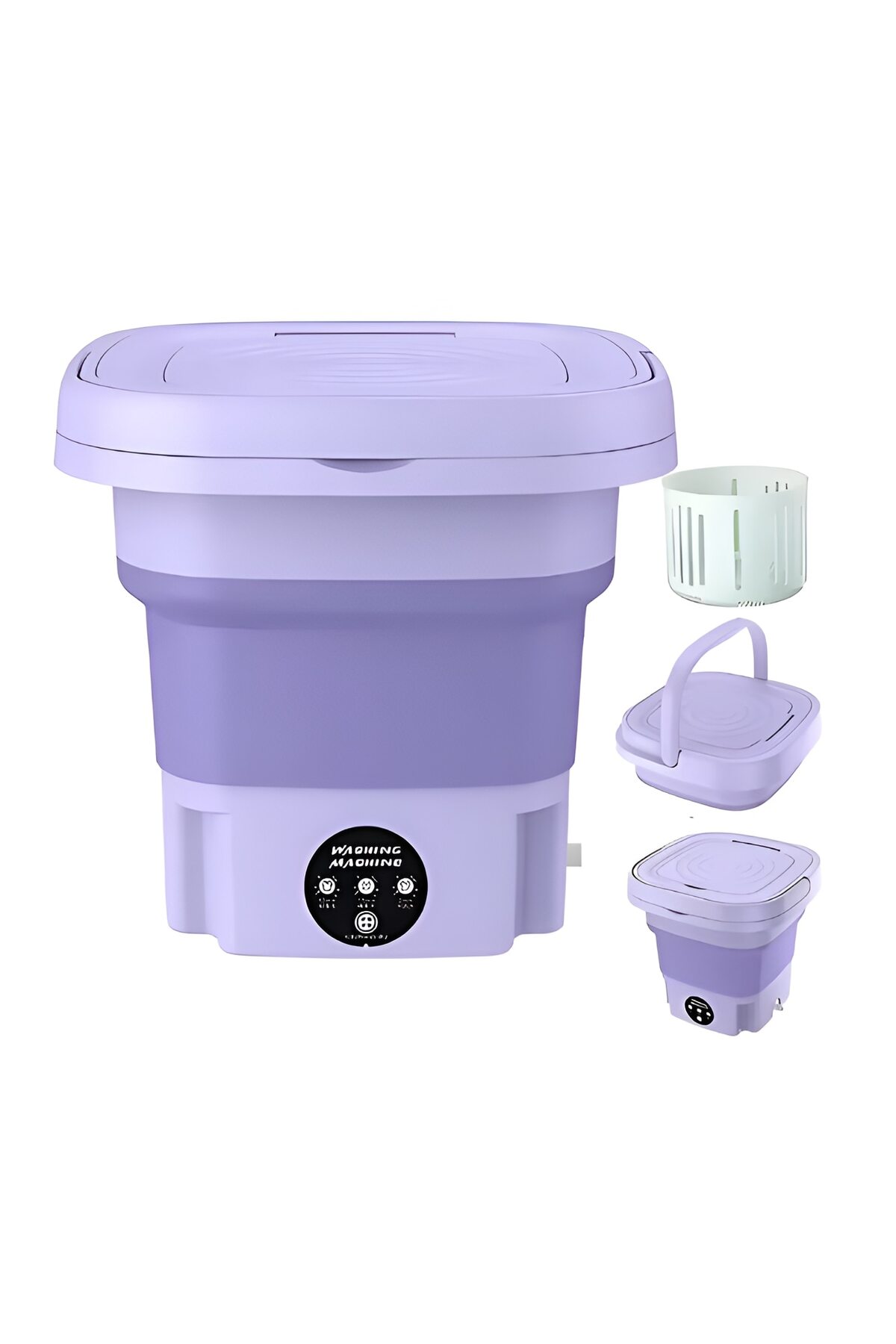 MACVI ® portable foldable washing machine, 6.5L, spin function, 3 wash programs, compact, purple.